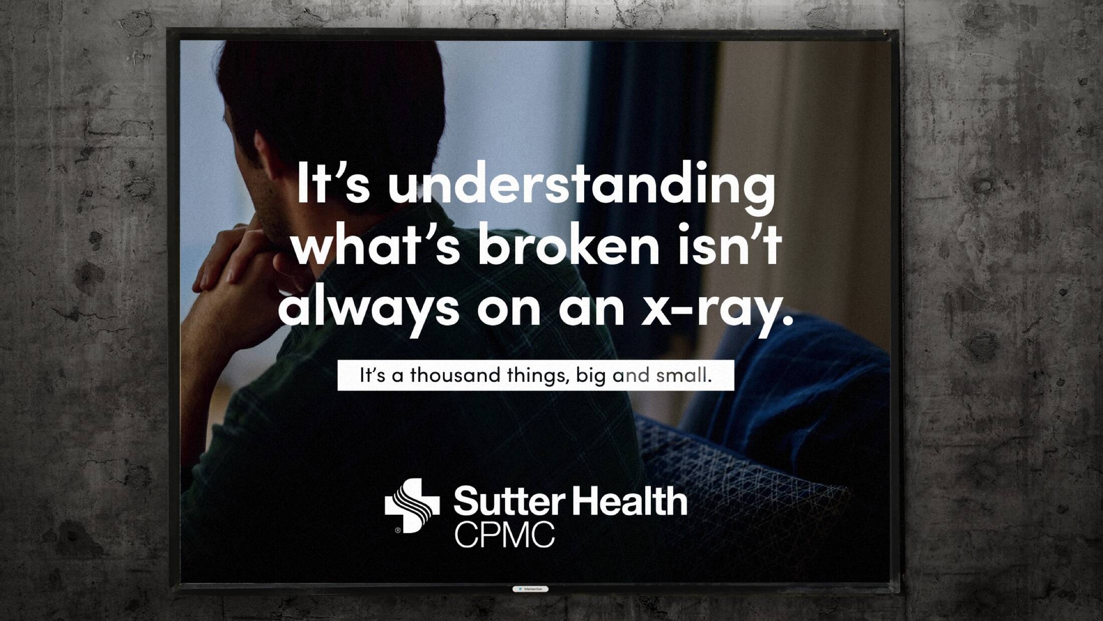 This professional campaign titled '1,000 Things' was published in United States in February, 2020. It was created for the brand: Sutter Health, by ad agency: BarrettSF. This Film medium campaign is related to the Health industry and contains 10 media assets. It was submitted almost 6 years ago.