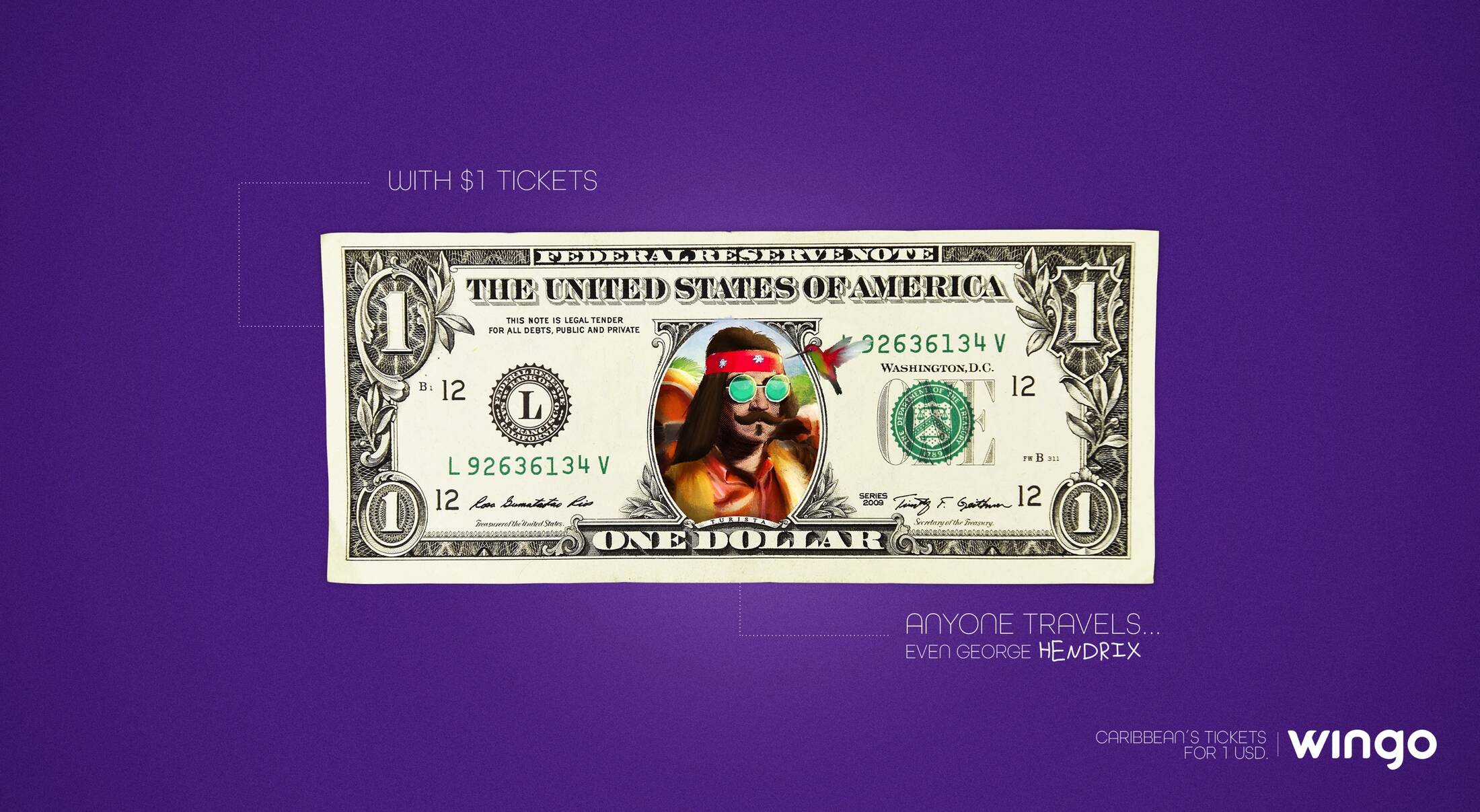 This professional campaign titled '1 Dollar Tickets, Georgina, 1 Dollar Tickets, George Hend...' was published in Colombia in September, 2018. It was created for the brand: Wingo, by ad agency: Grey. This Print medium campaign is related to the Transport industry and contains 4 media assets. It was submitted about 7 years ago.
