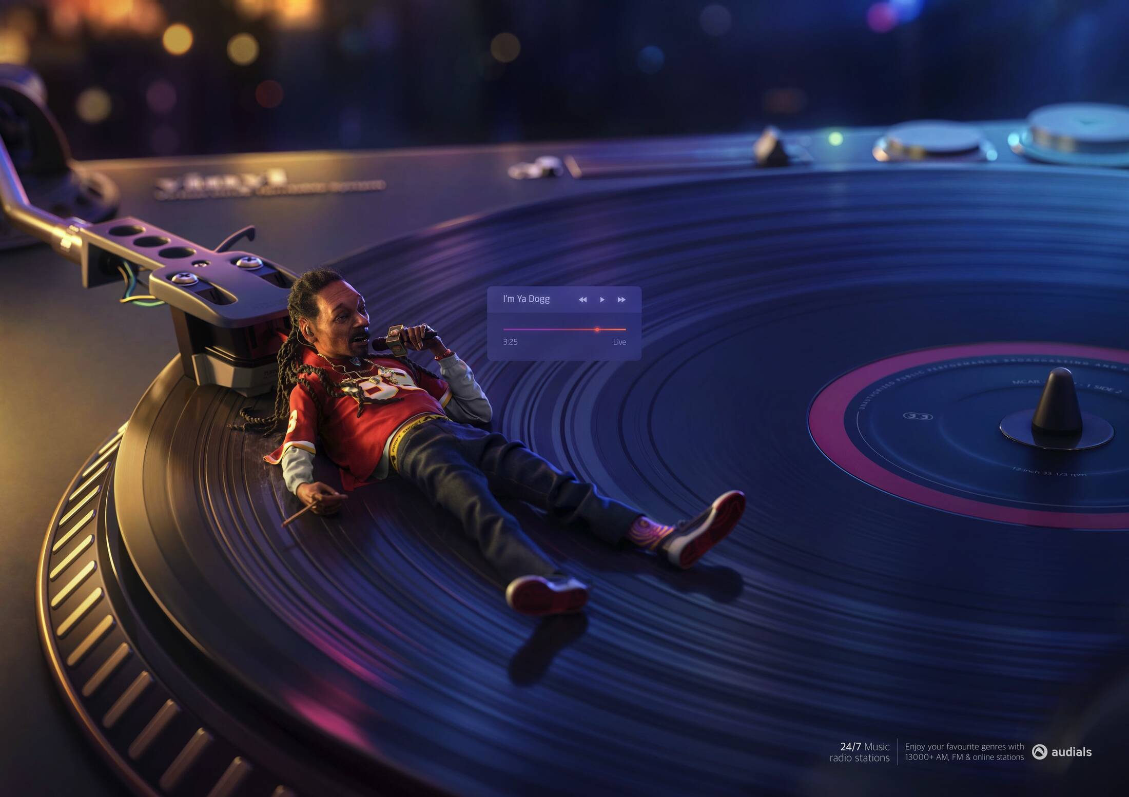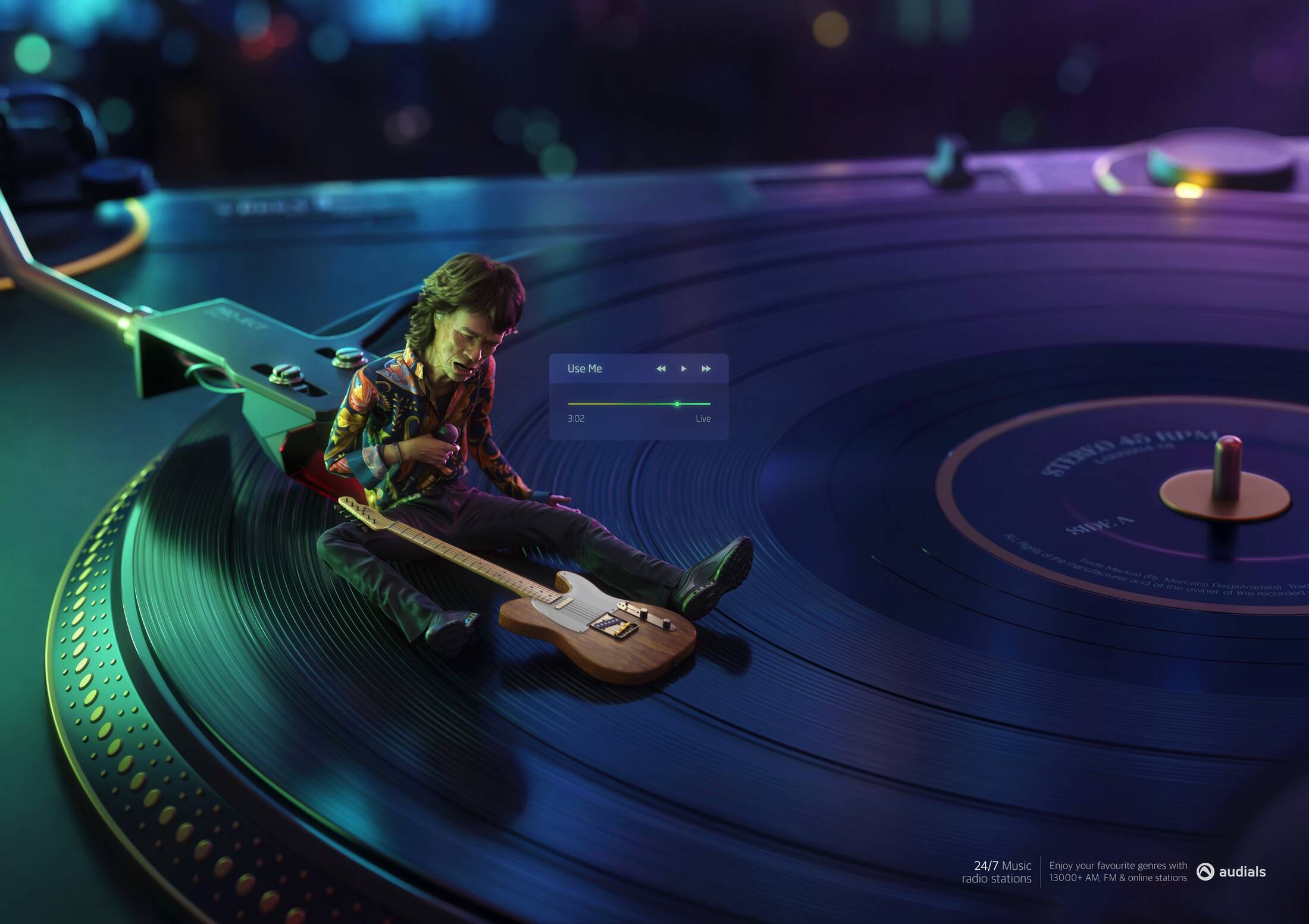 Audials is a music streaming service with the largest selection of music radio stations from all over the world, allowing its users to choose from 13000+ stations from all genres and stream all day long for free. We brought this to life in this initiative from ideation, all the way to sketching, studying, CGI and creative retouching.