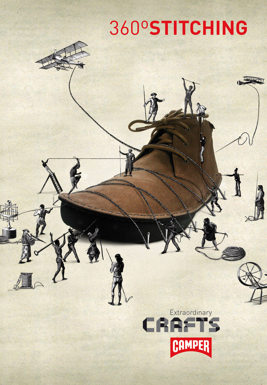 This professional campaign titled '360° Stitching, Lightweight, Waterproof' was published in Spain in March, 2009. It was created for the brand: Camper, by ad agency: Swing Swing. This Print medium campaign is related to the Fashion industry and contains 3 media assets. It was submitted over 15 years ago.