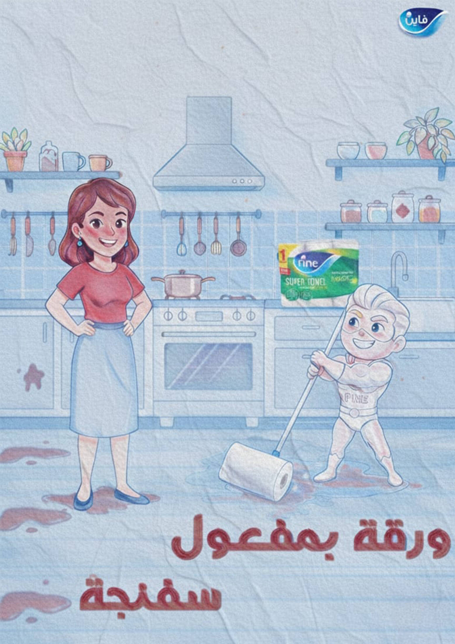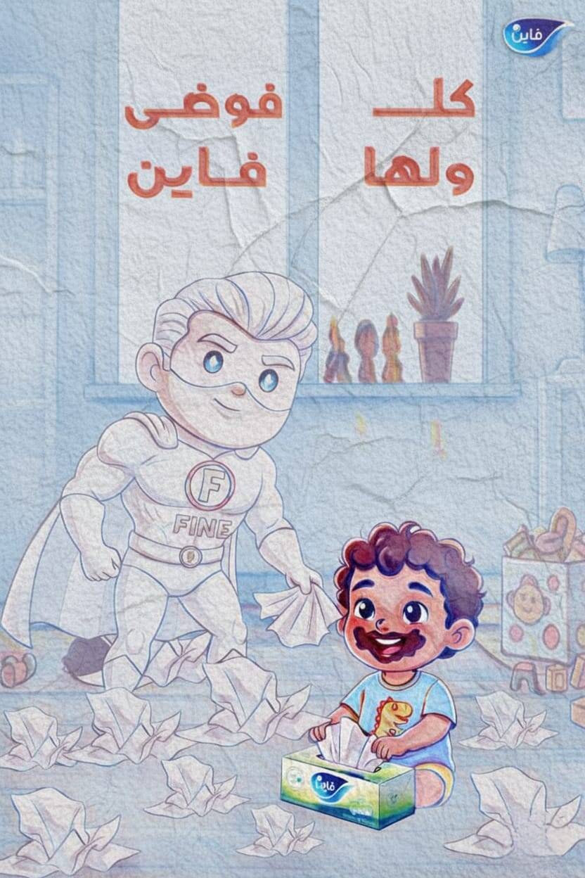 The "Everyday Hero" campaign revolves around the creative concept of a "Hidden Hero" who lives within the simple, messy moments of our daily lives, where the "Super Fine" character acts as a guardian of cleanliness and comfort for the entire family. This campaign reimagines Fine products not merely as paper tissues, but as a personified force of support; for instance, the kitchen towel is portrayed as a powerful tool with the "absorbent effect of a sponge" to tackle spills instantly, while the pocket tissues act as a portable hero ready to protect you from germs on the go. This heroic persona extends to the refreshing wet wipes, which serve as a beauty companion to maintain a fresh and glowing look throughout the day.