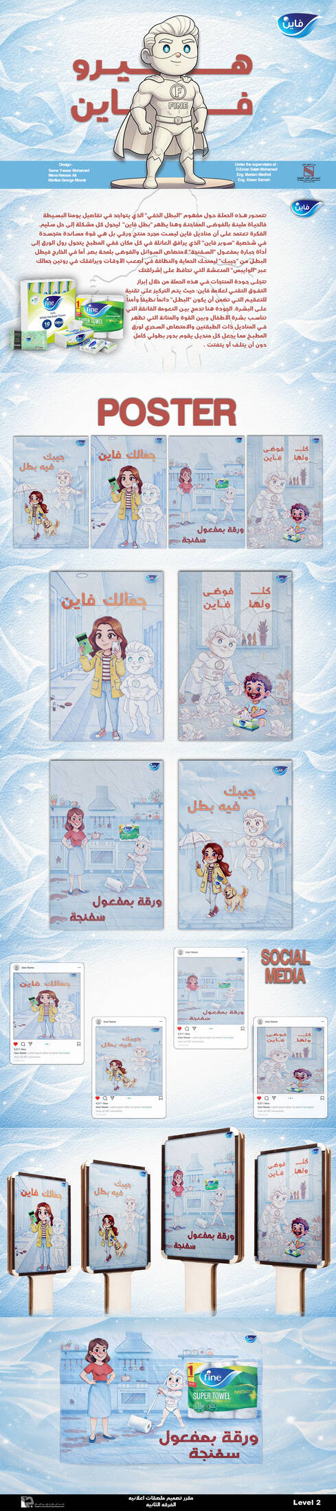 This student campaign titled 'هيرو فاين' was published in Egypt in January, 2026. It was created for the brand: Campaign, by ad school: The Higher Institute Of Applied Arts. This Design medium campaign is related to the Household Products industry and contains 5 media assets. It was submitted 1 day ago by CREATIVE GRAPHIC DESIGNER: SAMA YASSER MOHAMED of APPLIED ARTS.