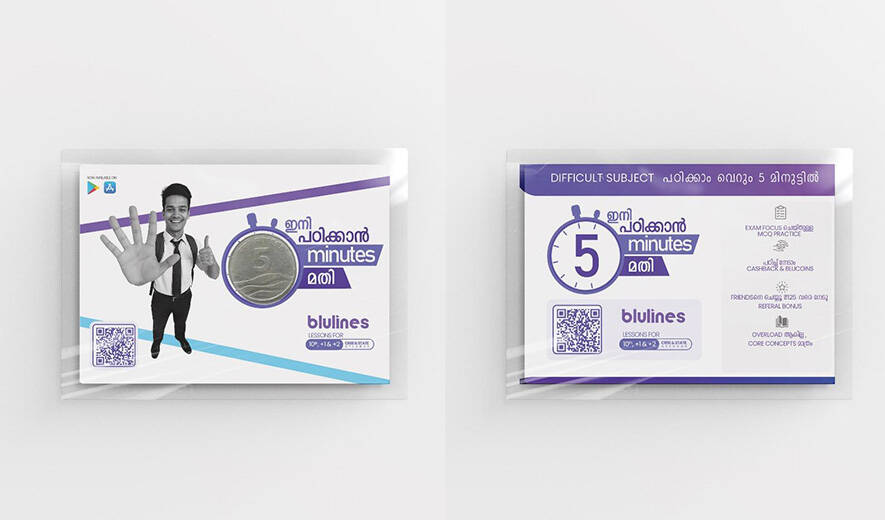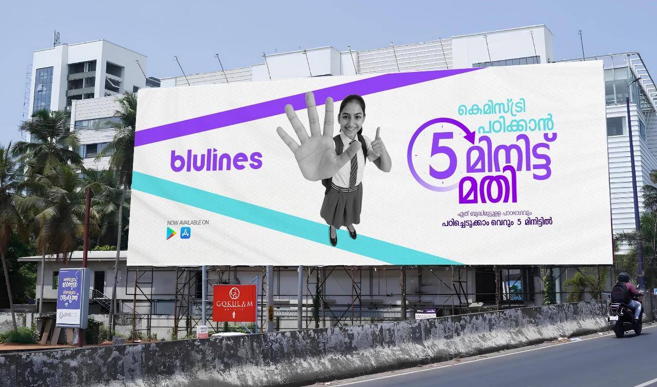 This professional campaign titled 'ഇനി പഠിക്കാൻ 5 മിനിറ്റ് മതി ' was published in India and United Arab Emirates in August, 2025. It was created for the brand: Blulines Learning, by ad agency: Mentar Ventures Pvt Ltd. This 360°, Film, and OOH Outdoor media campaign is related to the Education industry and contains 8 media assets. It was submitted about 2 months ago by Mentar Ventures of Branding and Perfomance Marketing Agency.