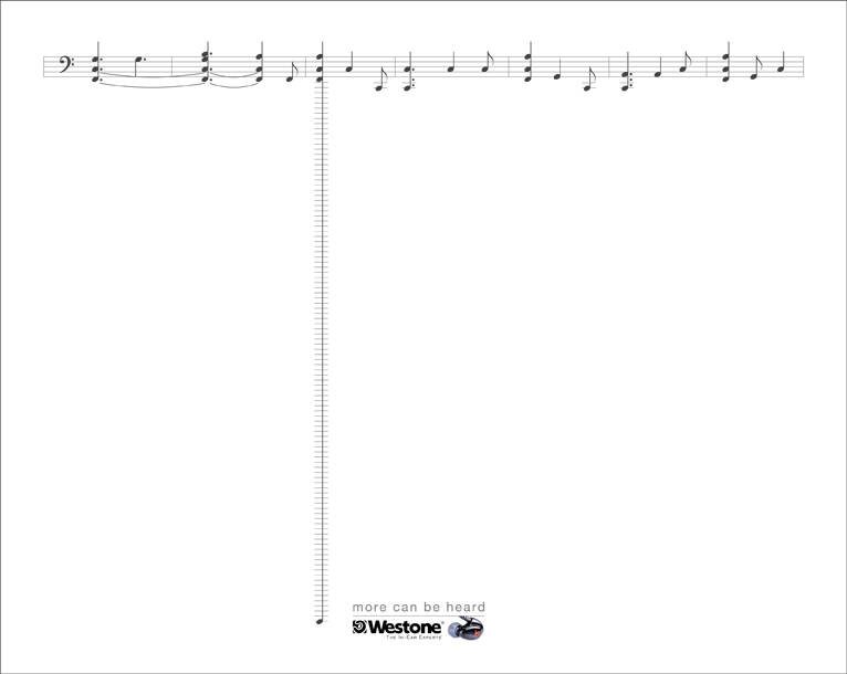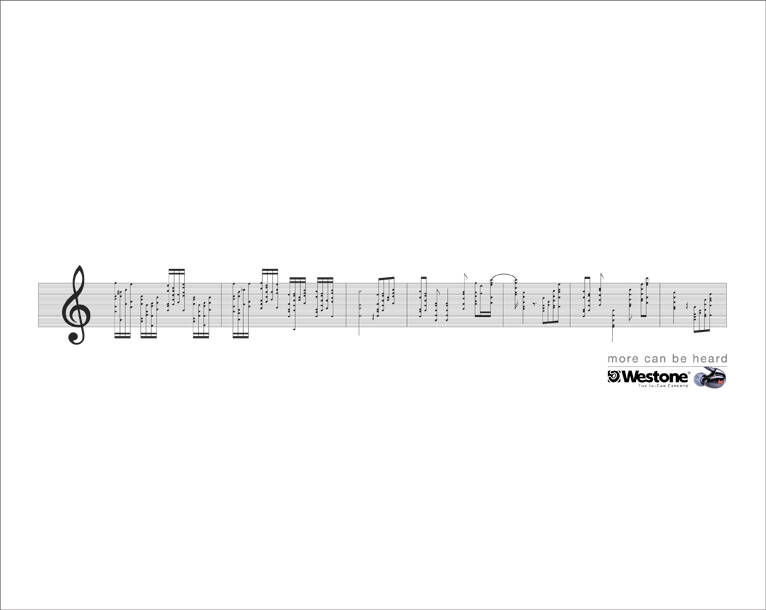 This professional campaign titled '5 Line Staff, Low Key, 5 Line Staff, High Key, 5 Line Sta...' was published in China in December, 2010. It was created for the brand: Westone, by ad agency: Grey. This Print medium campaign is related to the Electronics, Technology industry and contains 3 media assets. It was submitted almost 15 years ago.