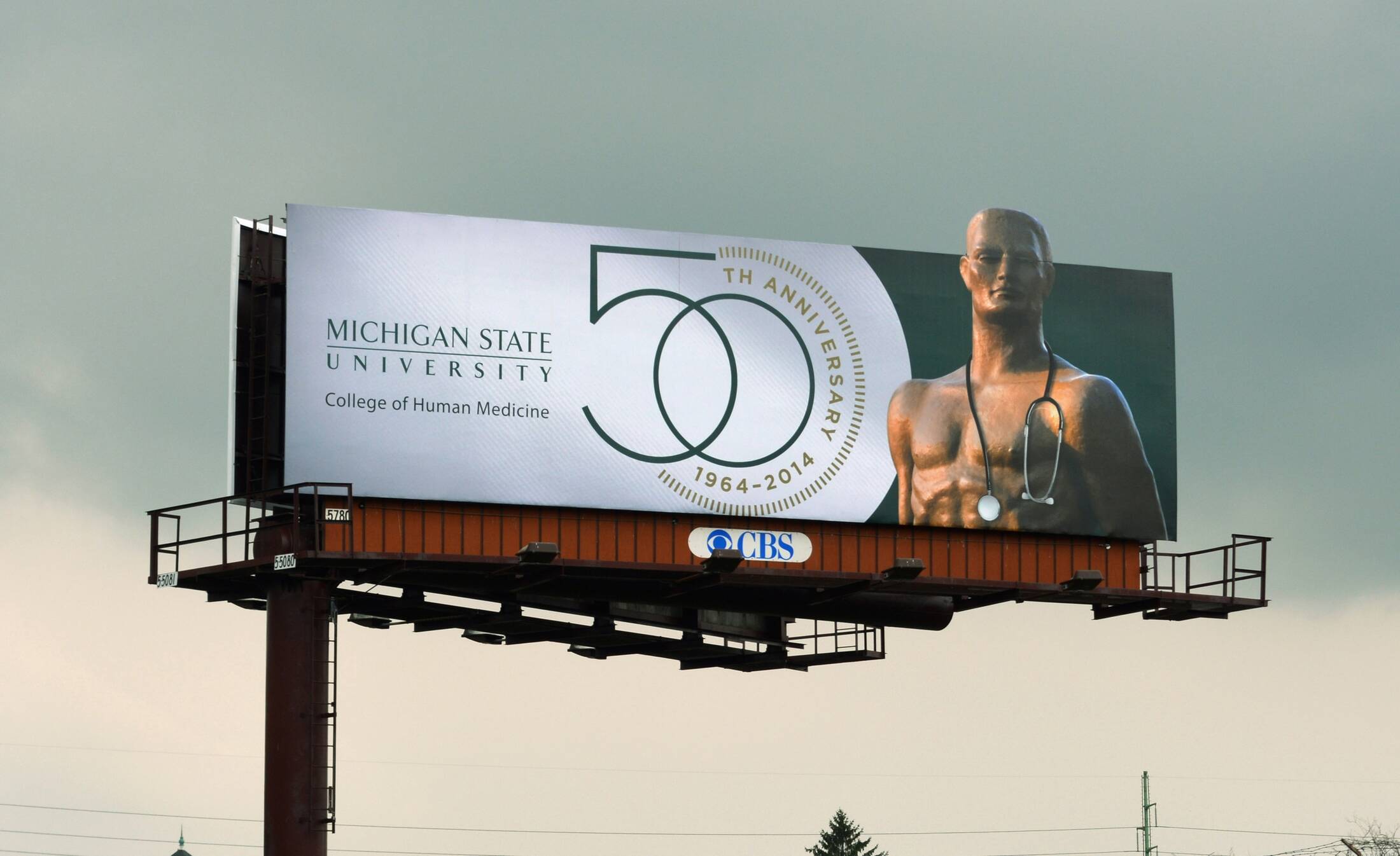 This professional campaign titled '50th Anniversary' was published in United States in August, 2014. It was created for the brand: Michigan State University, by ad agency: Extra Credit Projects. This OOH Outdoor medium campaign is related to the Education industry and contains 4 media assets. It was submitted about 11 years ago.