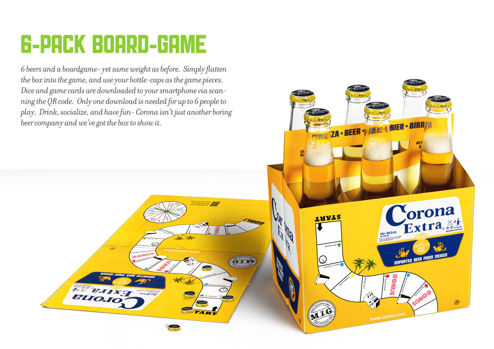 This professional campaign titled '6-Pack Boardgame' was published in United States in November, 2011. It was created for the brand: Corona Beer, by ad agency: Miami Ad School. This Static Images medium campaign is related to the Alcoholic Drinks industry and contains 1 media asset. It was submitted about 14 years ago.