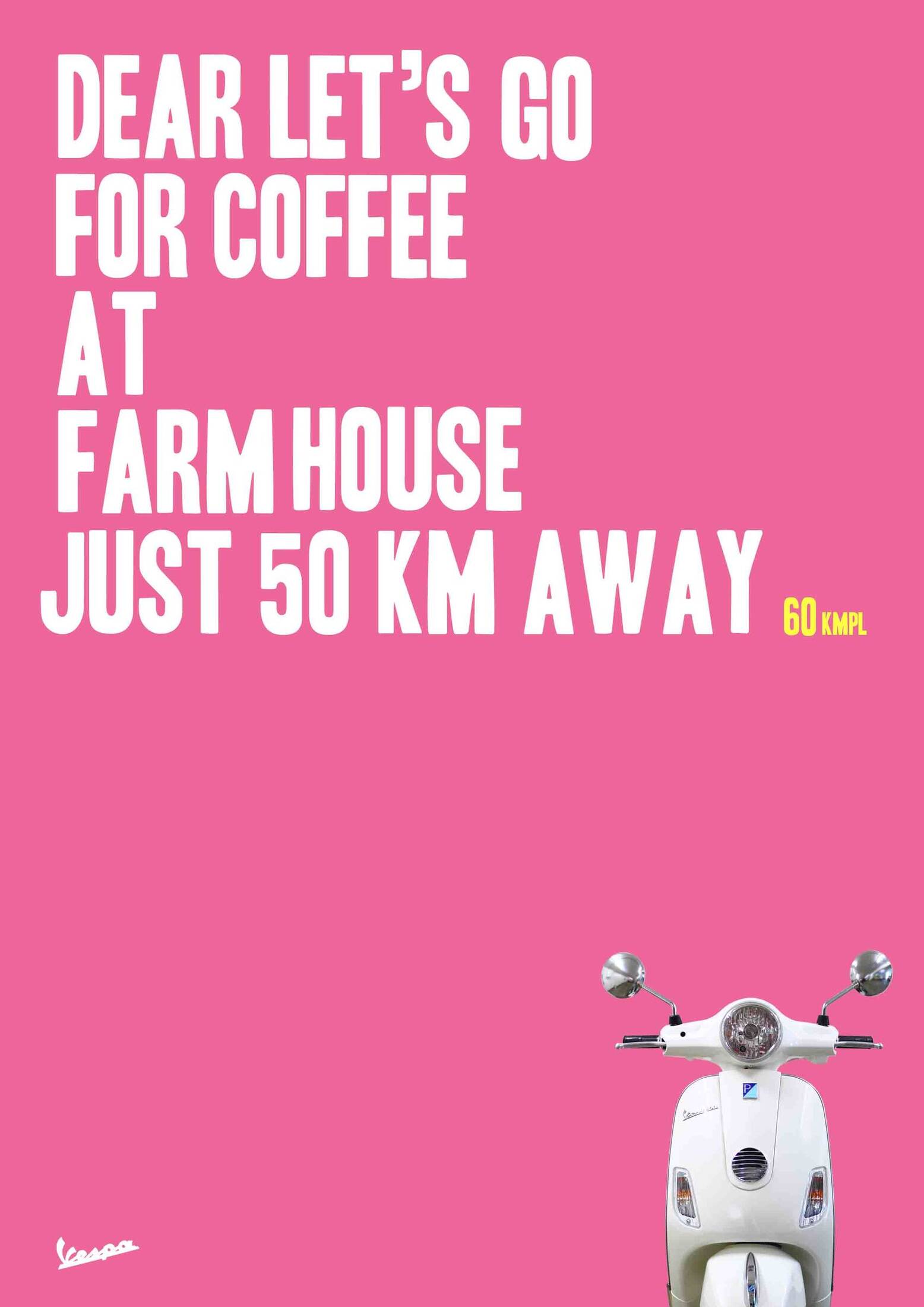 With the amazing 60 kmpl mileage of the all new Vespa, No distance is long now. also better savings as petrol rates are high in India.