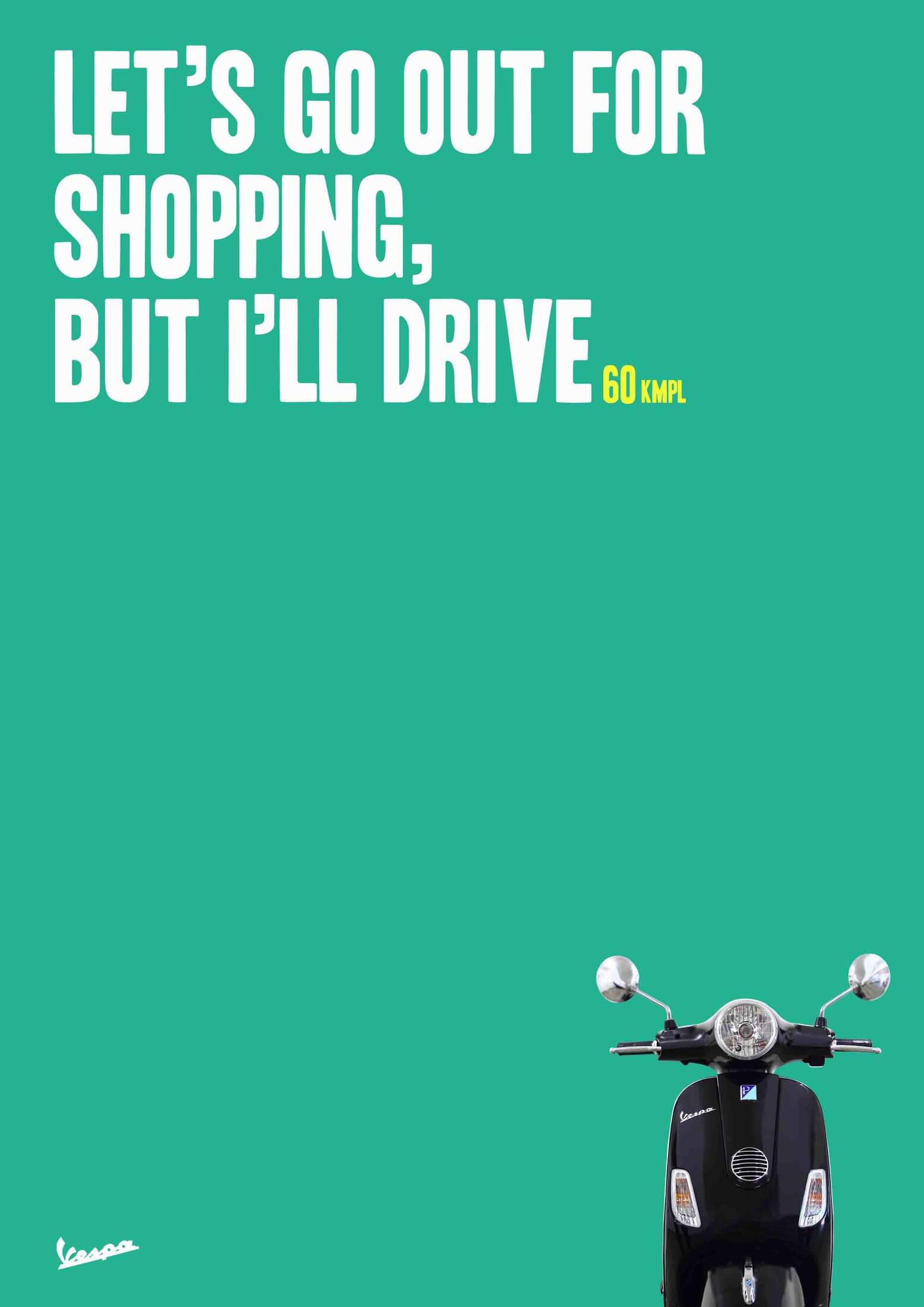 This professional campaign titled '60kmpl' was published in India in November, 2019. It was created for the brand: Vespa, . This Print medium campaign is related to the Automotive and Personal Transportation industry and contains 4 media assets. It was submitted about 6 years ago.