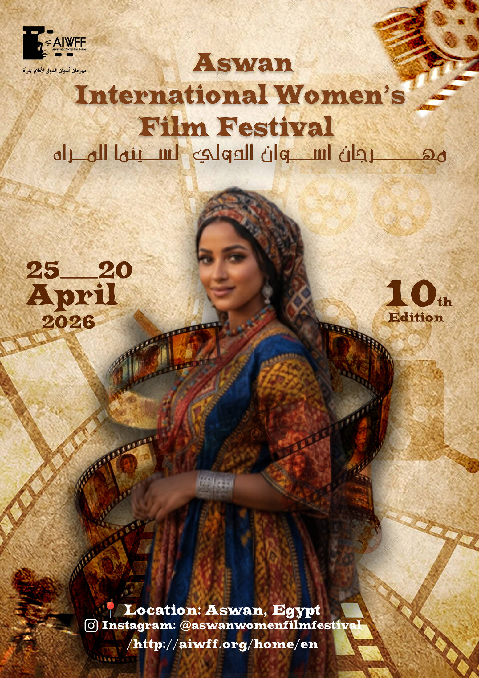 بوستر مهرجان أسوان الدولي لأفلام المرأة يجسد روح السينما والهوية الثقافية في قلب الجنوب المصري. تظهر امرأة بملامح مصرية أصيلة ترتدي زيًا مستوحى من التراث النوبي، في رمز واضح لقوة المرأة وحضورها وتأثيرها في الفن والمجتمع. يلتف شريط الفيلم حولها في تكوين بصري يعبر عن احتضان السينما لقصص النساء وتجاربهن، بينما تضيف الخلفية ذات الطابع الورقي والعناصر السينمائية الكلاسيكية إحساسًا بالتاريخ والعمق الفني.
