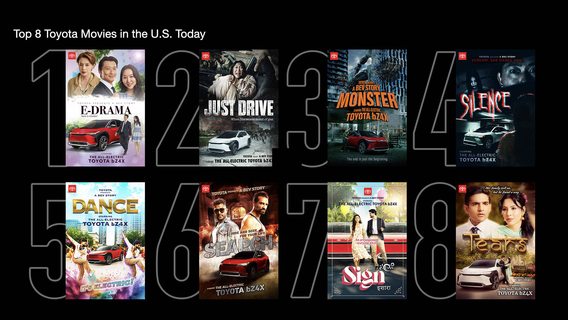 Toyota launches a collection of short films, starring Toyota’s all-electric vehicle, the bZ4X. We partnered with the world-renowned Asian film director, Tarsem Singh, to create eight 15-second films that tap into rising Asian cinema from high-energy Indian Tollywood to over-the-top K-drama to the classic Japanese Kaiju.