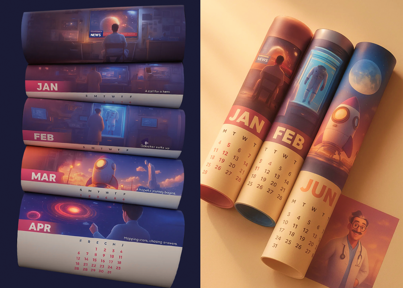 Both narratives turn the calendar into a storytelling medium that brings awareness while keeping hope at the heart of the message.