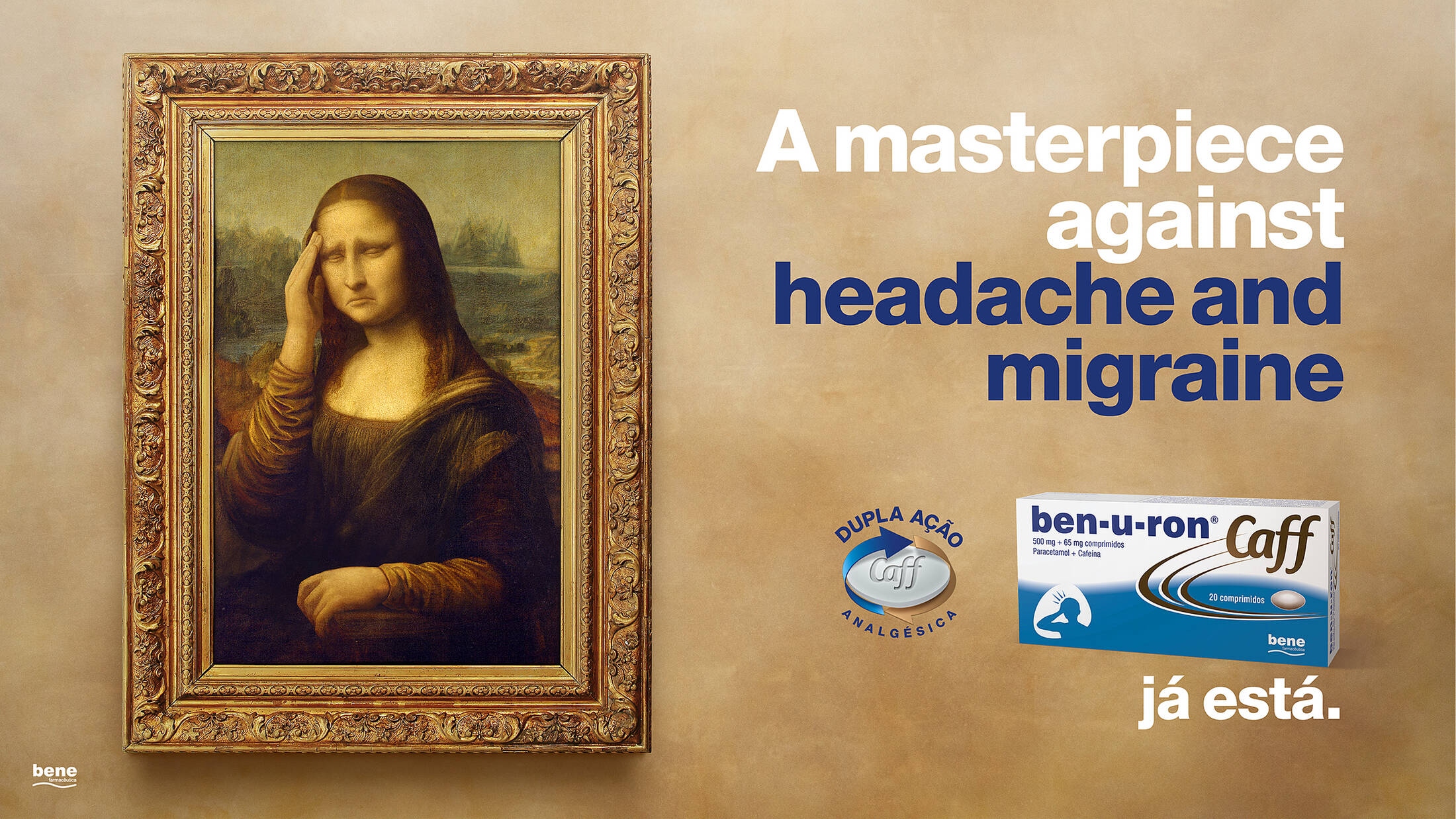 This professional campaign titled 'A Masterpiece Against Headache and Migrane' was published in Portugal in October, 2019. It was created for the brand: Ben-u-ron Caff, by ad agency: Mosca Publicidade. This Integrated medium campaign is related to the Pharmaceutical industry and contains 2 media assets. It was submitted about 6 years ago.