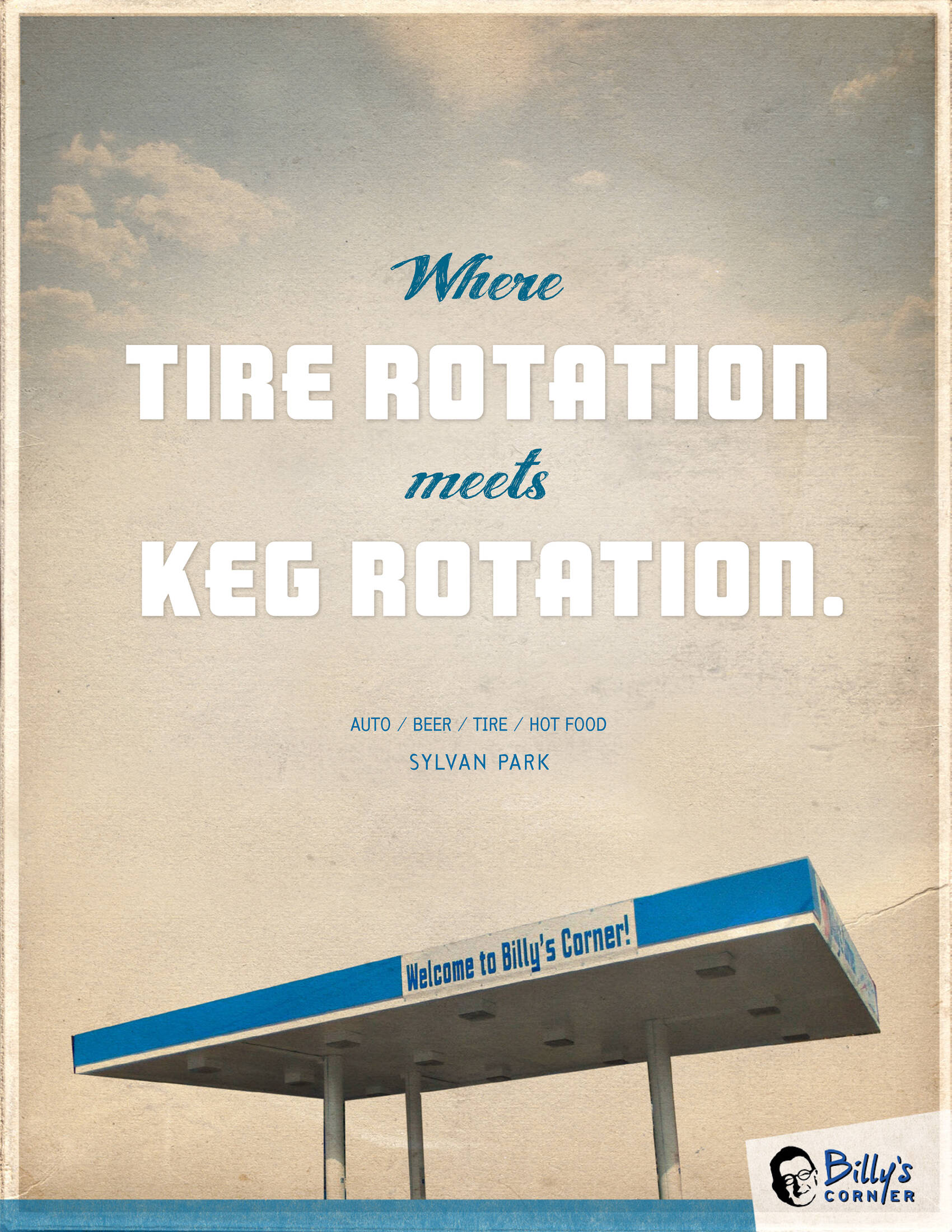 This professional campaign titled 'A Place, Tire Rotation, One Place' was published in United States in September, 2017. It was created for the brand: Billy's Corner, by ad agency: Duff + Smith. This Print medium campaign is related to the Automotive and Personal Transportation industry and contains 4 media assets. It was submitted over 8 years ago.