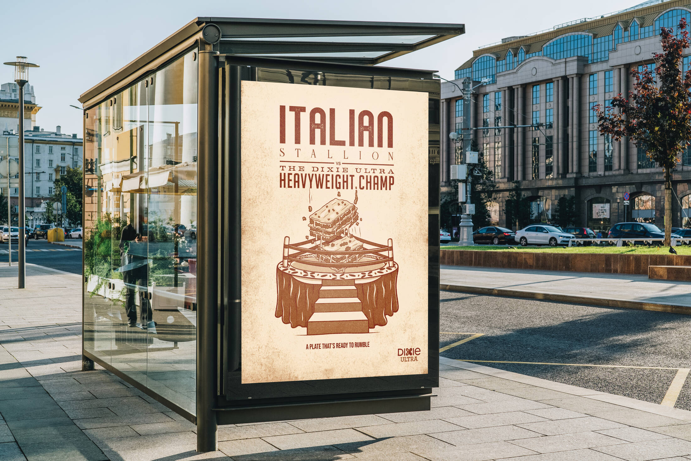 This student campaign titled 'A Plate That's Ready to Rumble' was published on January 01, 2023. It was created for the brand: Dixie Ultra, by ad school: Southern Methodist University. This OOH Outdoor medium campaign is related to the Food and Household Products industries and contains 5 media assets. It was submitted almost 2 years ago by Senior Lecturer & Creative Program Director: Mark Allen of Southern Methodist University.