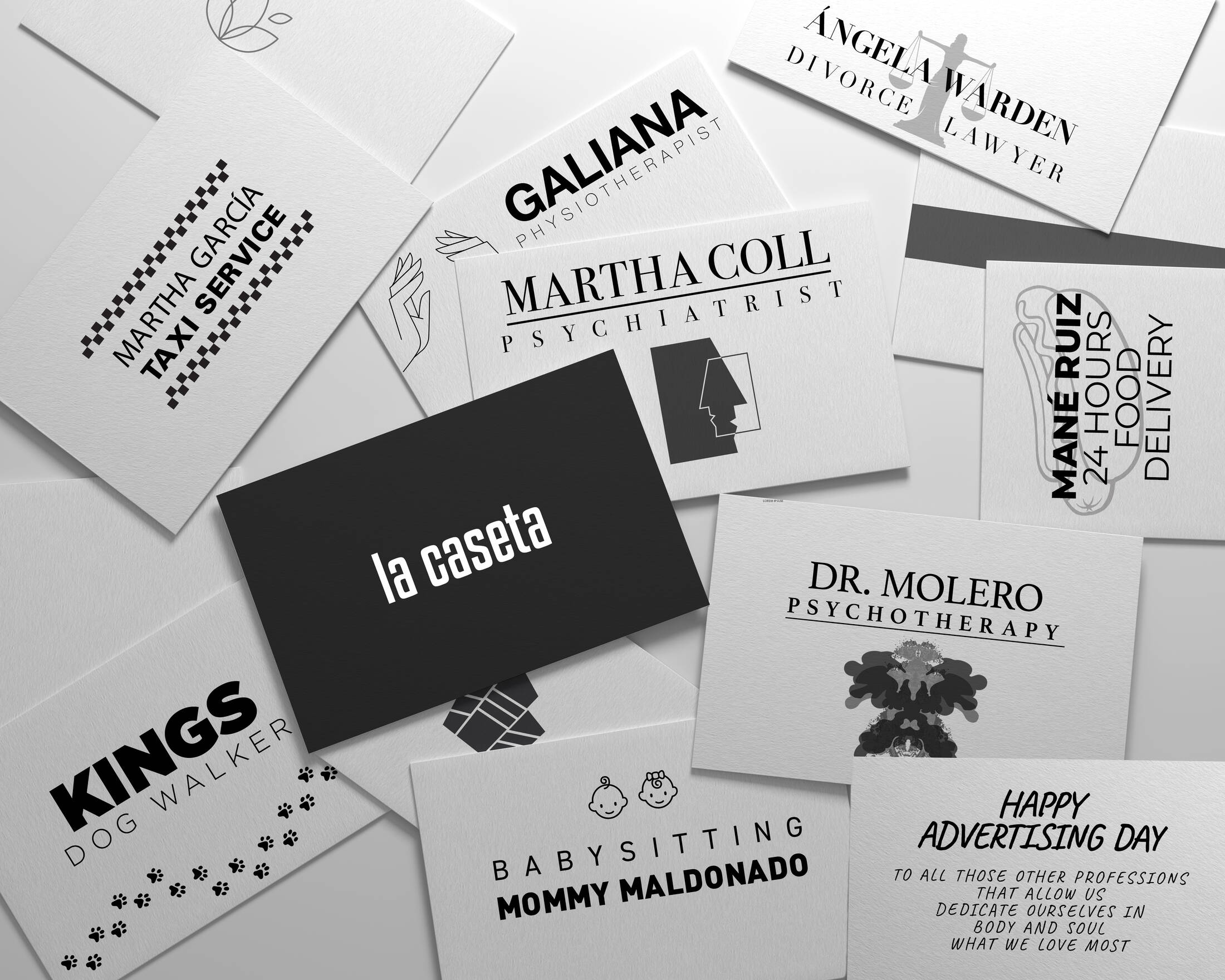 To celebrate the day of advertising in Spain, from the La Caseta agency we wanted to celebrate it not only with advertising professionals but also with all the other professions that help us to be able to dedicate ourselves body and soul to this profession. From humor and with a very real resource of business cards from different businesses that help us and make life easier for us to be able to dedicate ourselves body and soul to advertising.