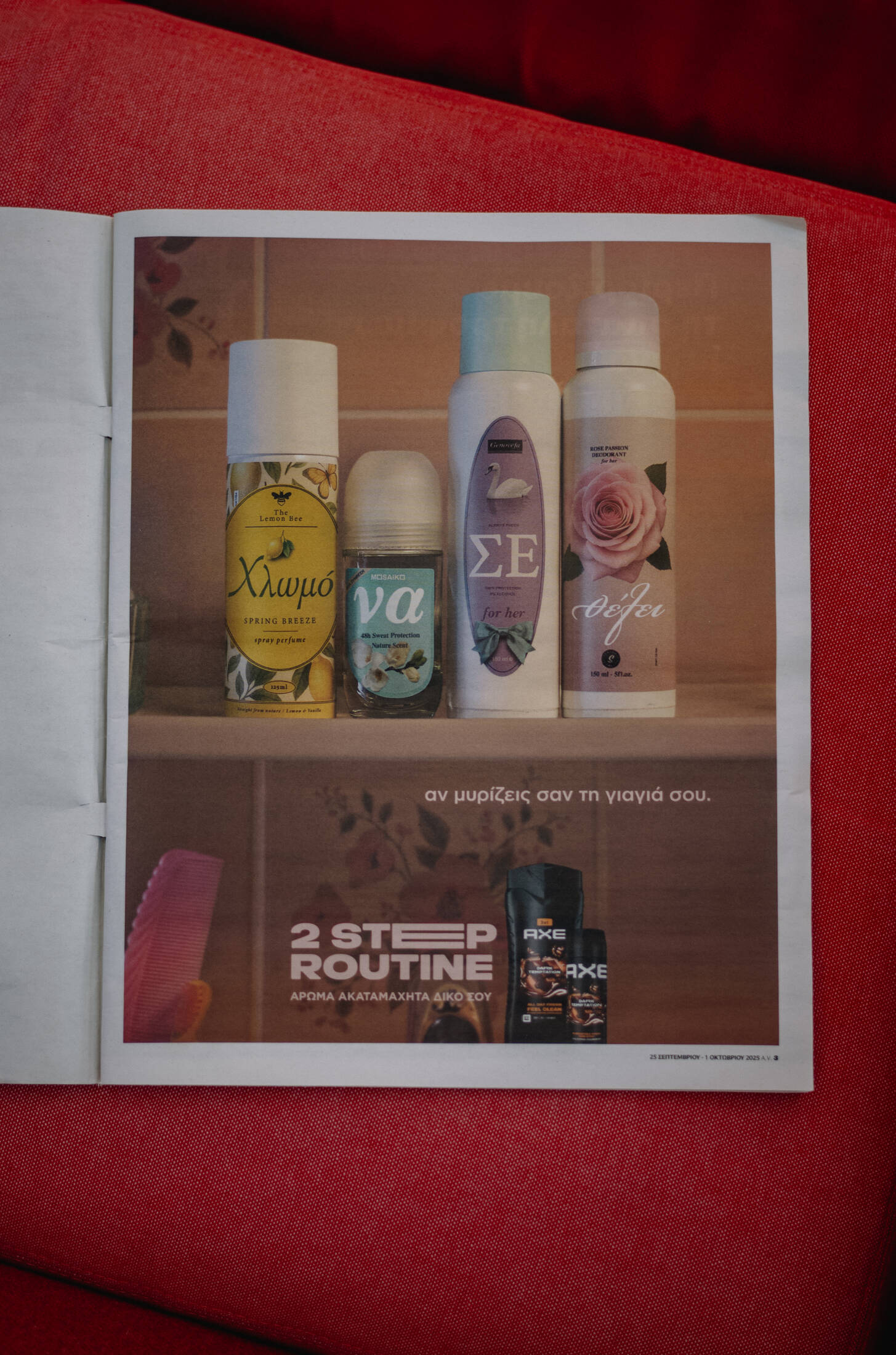 This professional campaign titled 'A scent that’s irresistibly yours' was published in Greece in October, 2025. It was created for the brand: AXE, by ad agency: Ogilvy Greece. This Print medium campaign is related to the Beauty industry and contains 5 media assets. It was submitted 2 months ago.