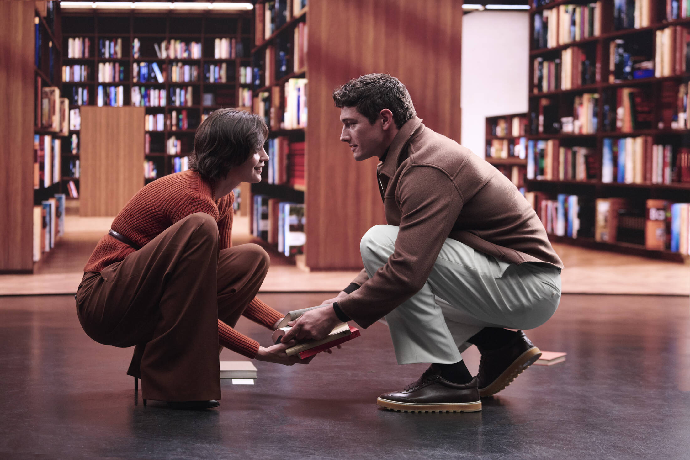 Through a series of theatrical scenes — a forest, a café, a library, a party — A Writer’s Block explores love, doubt, and the beauty of indecision, all dressed in Isaia’s timeless elegance.