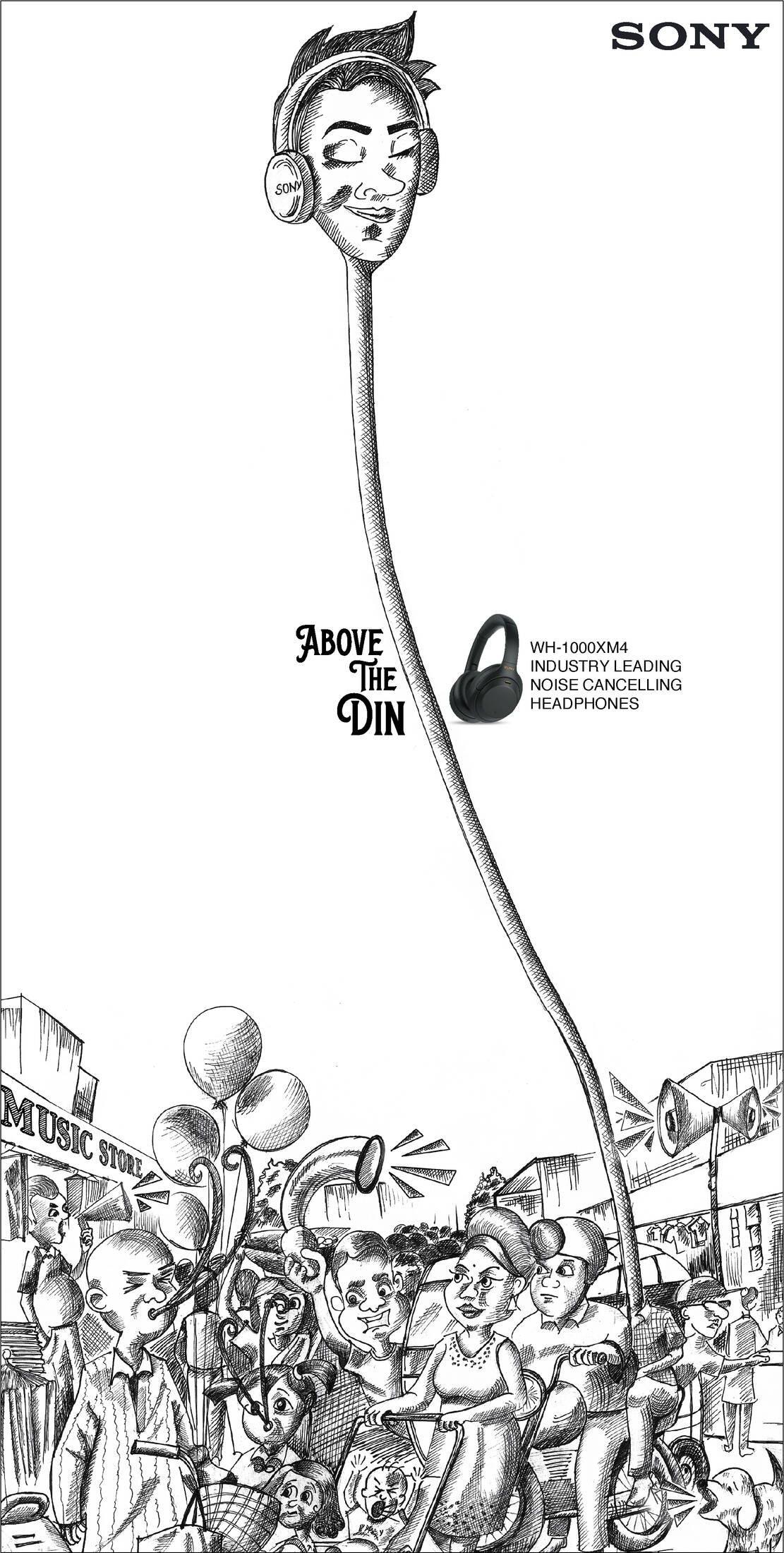 This professional campaign titled 'Above the din' was published in India in December, 2020. It was created for the brand: Sony, by ad agency: Innocean. This Print medium campaign is related to the Electronics, Technology industry and contains 3 media assets. It was submitted over 4 years ago.