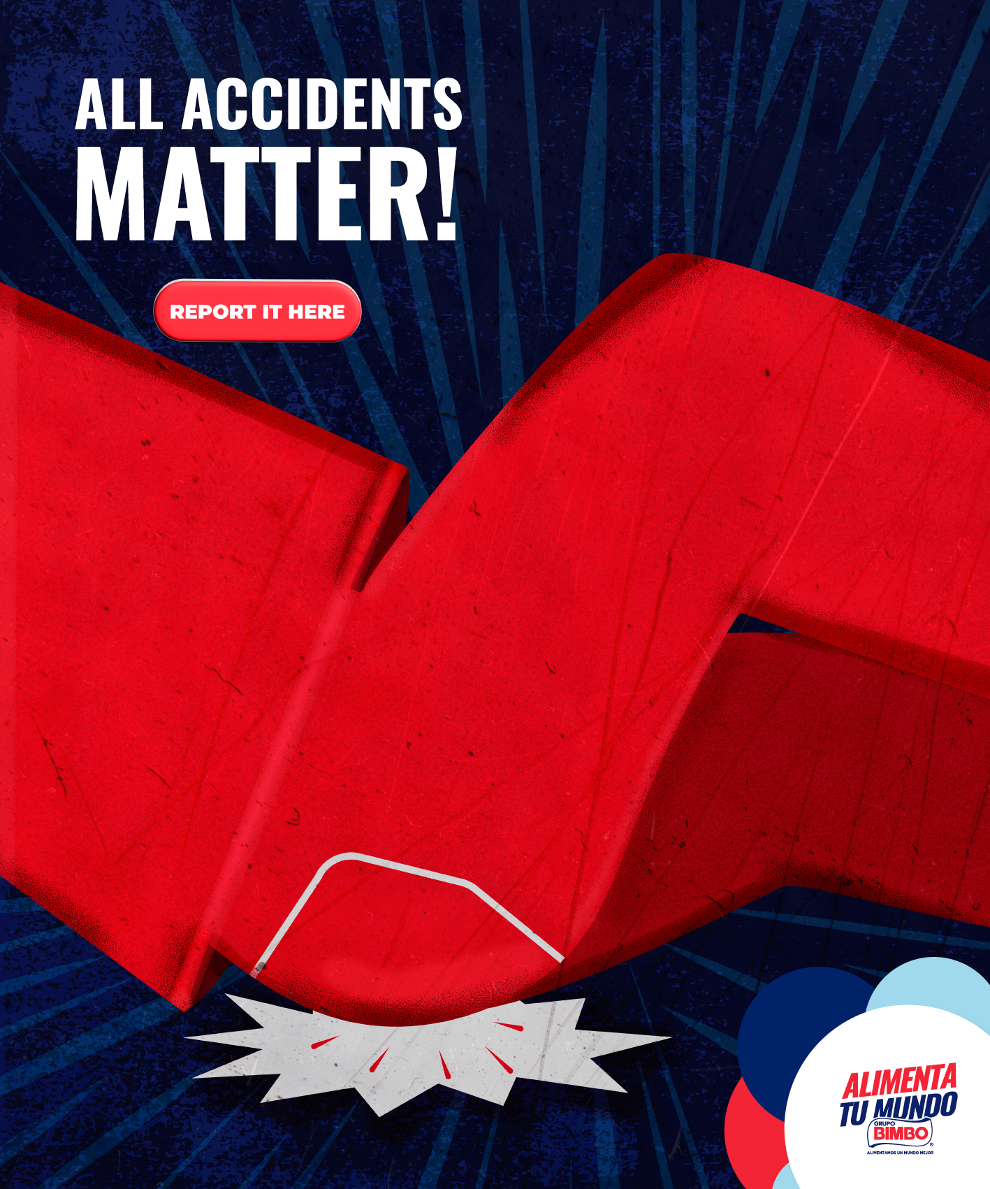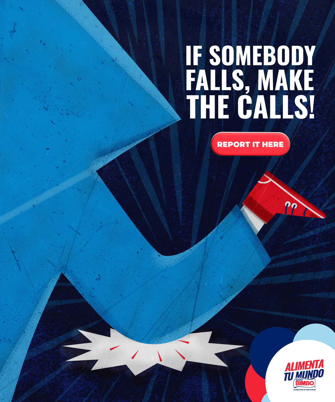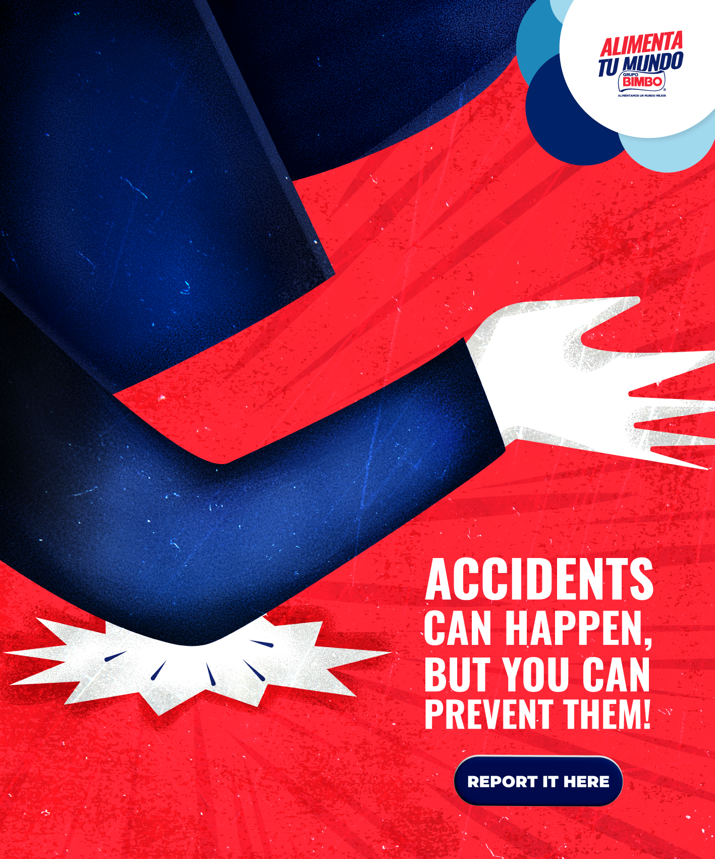 When it comes to internal communication, there isn't much time or space to convey your messages, no matter how important they are. That's why, in this accident prevention and communication campaign for BIMBO®, we created a series of prints that appeal to graphic simplicity and clear messaging, aiming to raise awareness about the importance of maintaining safety and reporting incidents that may occur daily