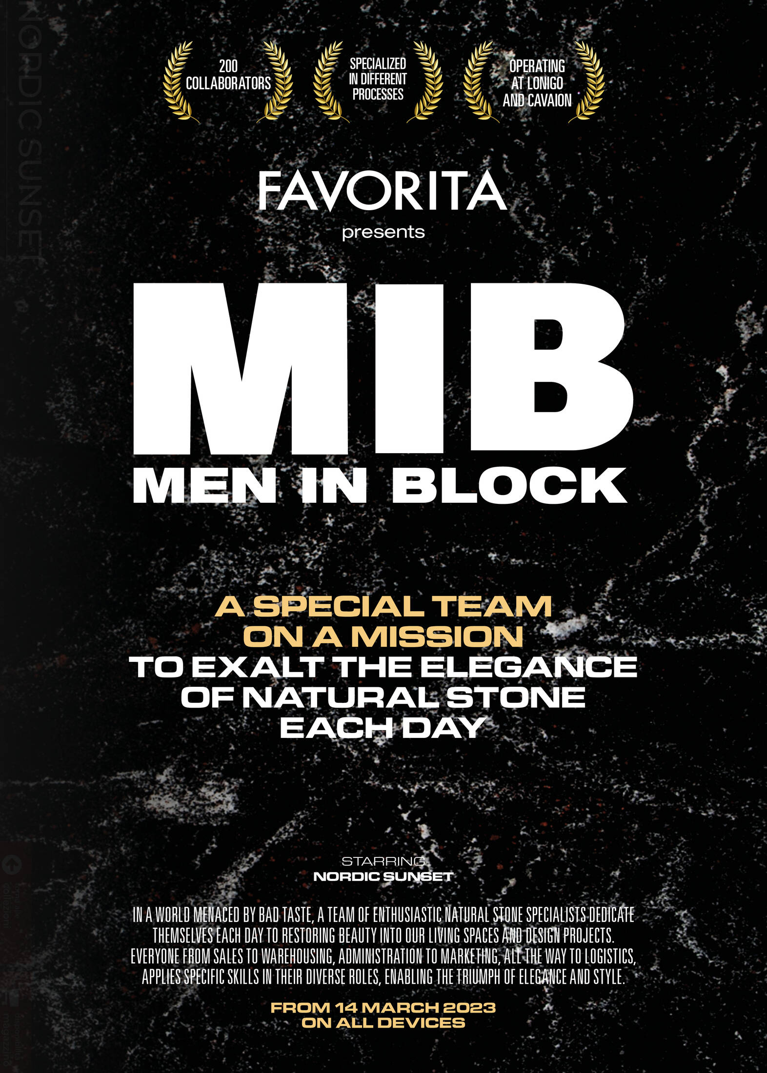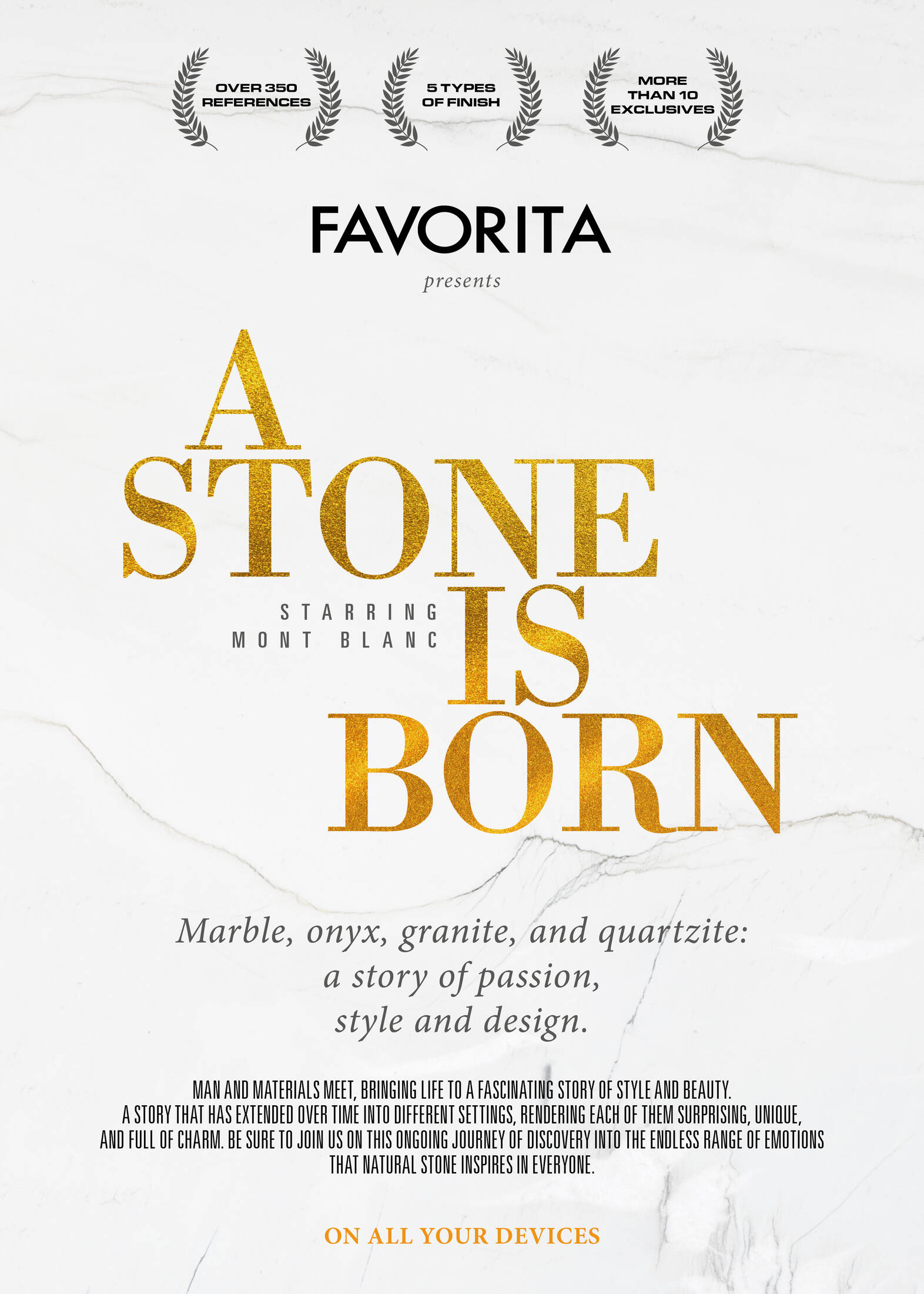 The fresh-new digital campaign for Favorita, deeply inspired by iconic films. Favorita SPA is a company that imports and works natural stone.