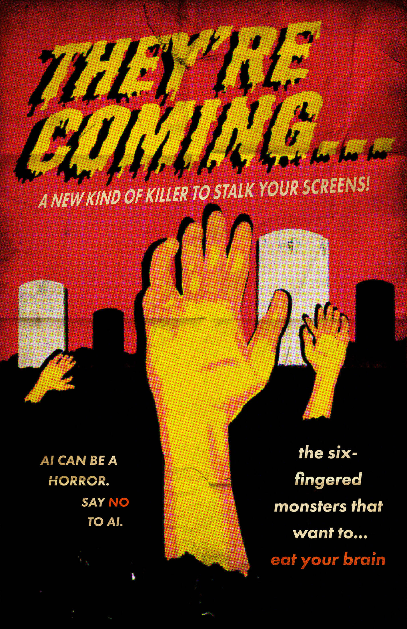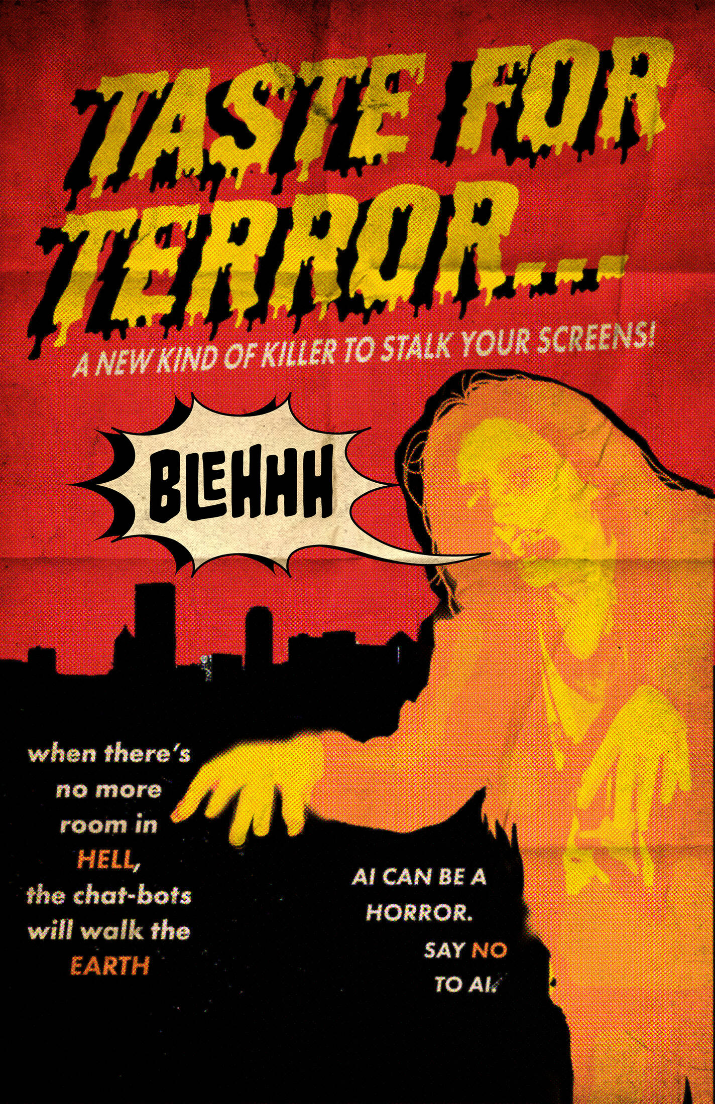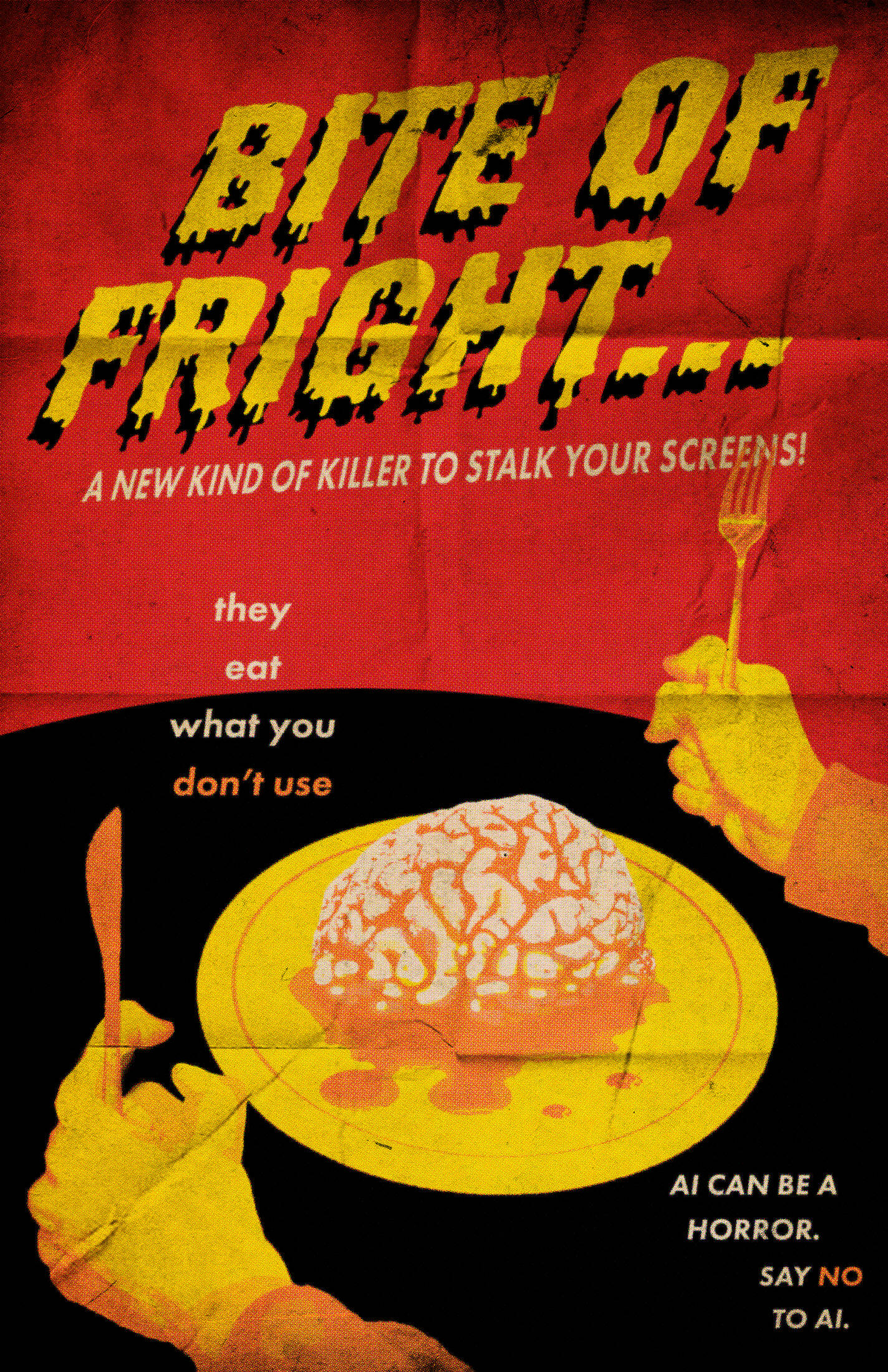 An increasing number of people are using Artificial Intelligence to create art and design. This poses a problem because it reduces the value of genuine human effort and emotion. Relying on AI for such tasks can be seen as lazy, boring, or careless. This campaign focuses on the use of AI in creative fields and aims to SCARE people into choosing human-created art over AI-generated work.