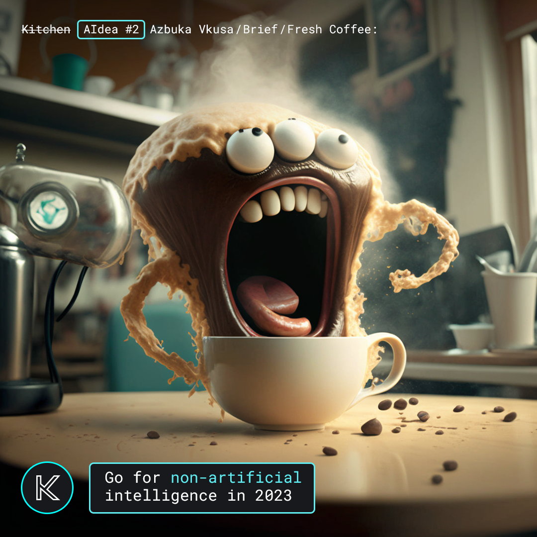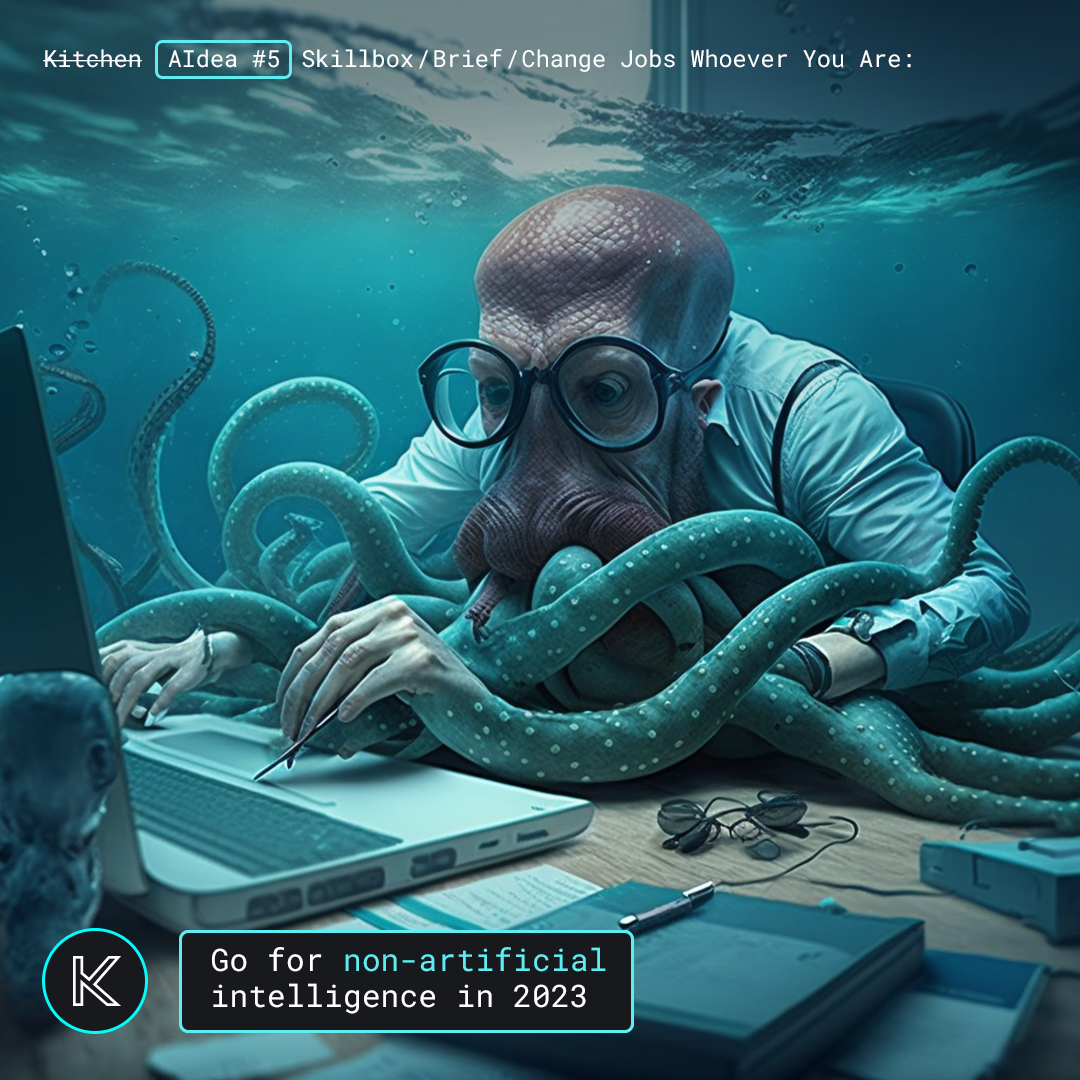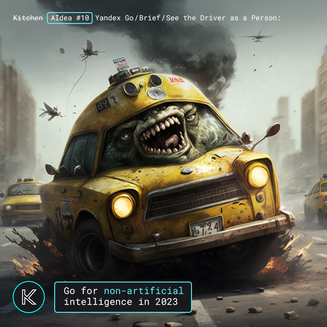 This professional campaign titled 'Aideas: Go For Non-Artificial Intelligence In 2023' was published in Russia in December, 2022. It was created for the brands: Kitchen, Ozon, Skillbox, and Yandex, by ad agency: Kitchen. This Print and Static Images media campaign is related to the Agency Self-Promo industry and contains 9 media assets. It was submitted almost 3 years ago by PR: Ekaterina Voskoboynikova of Jekyll&Hyde.