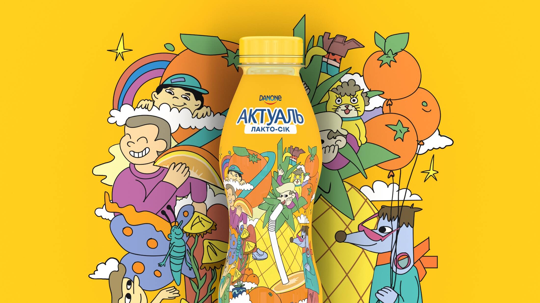 Aktual by Danone is an extraordinary lactic drink. So it needed extraordinary redesign to differ among all the competitors on the milk shelves. Surrealistic multicolor illustrations show that "Aktual will refresh you in any, even the weirdest, situation." The cover is filled with various features such as "guide on daily refreshment", so that people could view it on the way to the cashier, or even post it on Instagram.