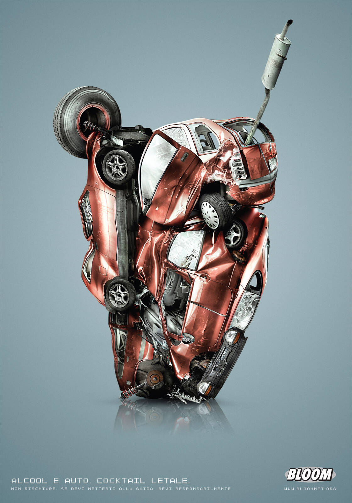 This professional campaign titled 'Alcool and car. Lethal cocktail.' was published in Italy in April, 2011. It was created for the brand: Bloom, by ad agency: Red Cell. This Print medium campaign is related to the Public Interest industry and contains 1 media asset. It was submitted about 13 years ago.