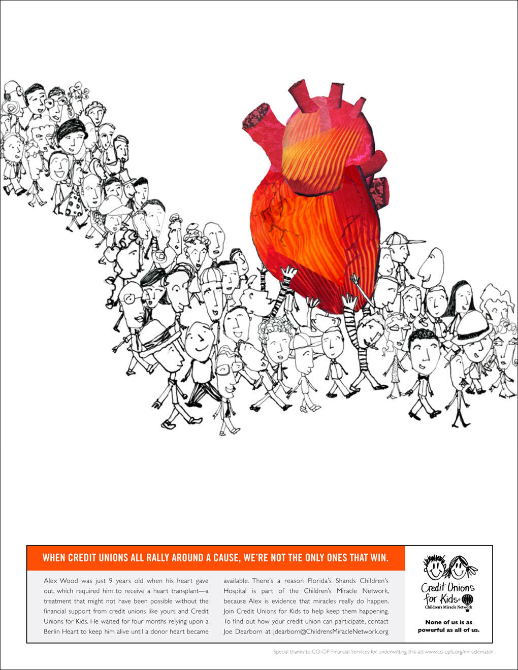 This professional campaign titled 'Alex, Shelby, Kevin, Weston' was published in United States in May, 2009. It was created for the brand: Credit Unions for Kids, by ad agency: O'Leary and Partners. This Print medium campaign is related to the Finance industry and contains 4 media assets. It was submitted over 16 years ago.