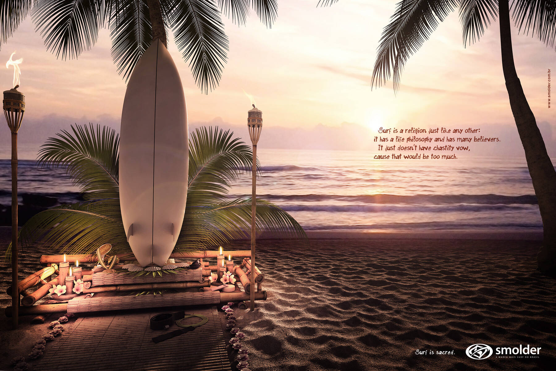 This professional campaign titled 'Altars, Night, Altars, Afternoon, Altars, Day' was published in Brazil in April, 2011. It was created for the brand: Smolder, by ad agency: Hermandad. This Print medium campaign is related to the Recreation, Leisure industry and contains 3 media assets. It was submitted over 14 years ago.