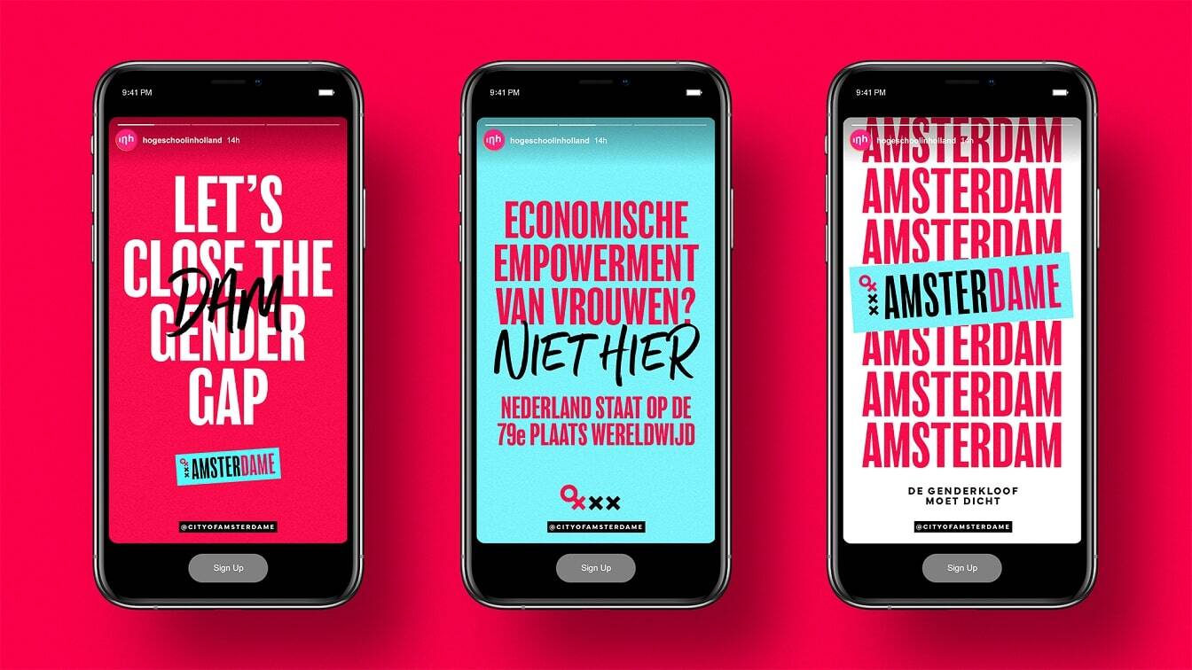 “Creativity has always been a powerful force to inspire change. Our hope is that by creating an identity for the Dutch fight for gender equality, we give the cause meaning beyond words, and inject an energy into it that unites the people of Amsterdam to take action”.