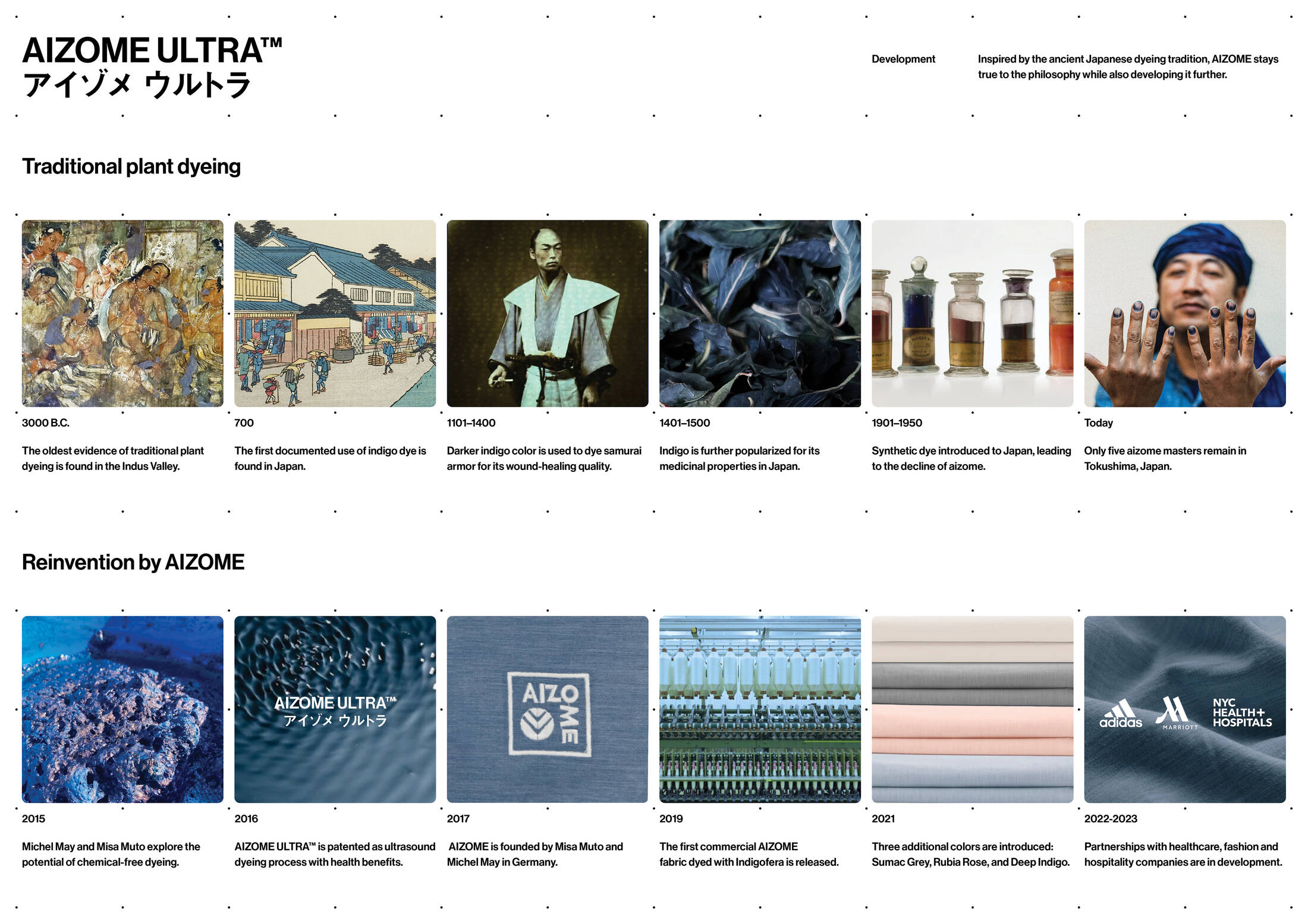 This professional campaign titled 'An innovative method to create textiles with lasting health benefits.' was published in Japan in January, 2025. It was created for the brand: AIZOME, by ad agency: Serviceplan Munich. This Integrated medium campaign is related to the Health industry and contains 4 media assets. It was submitted 11 months ago.