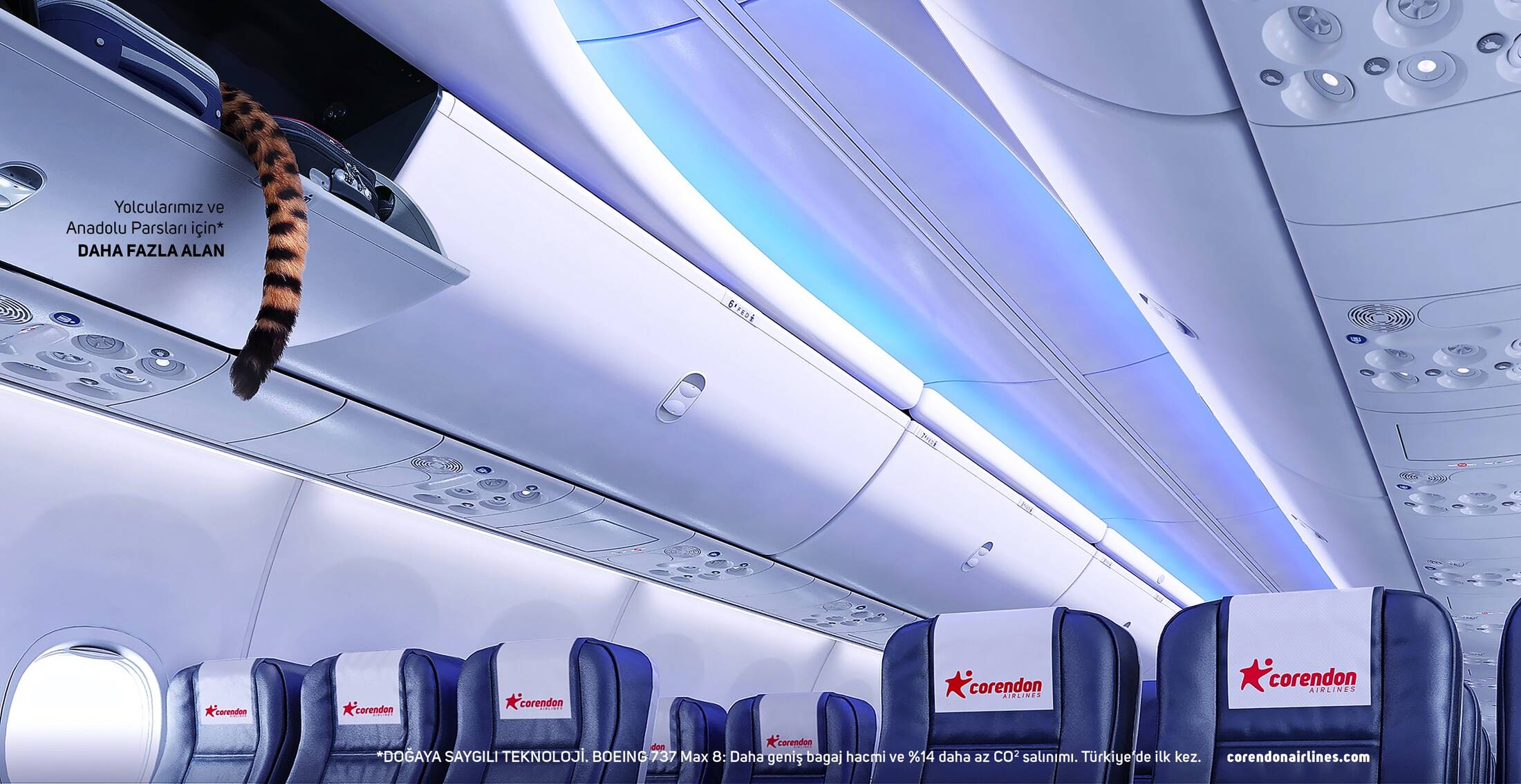 The new BOEING 737 Max 8 aircraft of CORENDON Airlines provides more luggage space and 14% less CO2 pollution release thus being more environment friendly for endangered species i.e. the Anatolian Leopard.