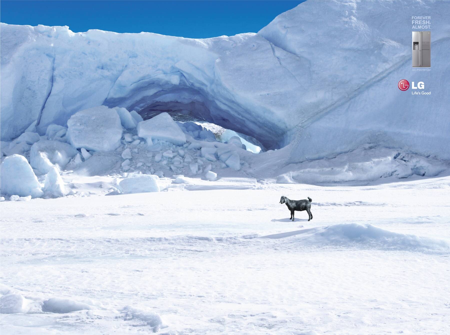 This professional campaign titled 'Antarctica Goat, Antarctica Chicken, Antarctica Cow' was published in Bangladesh in March, 2013. It was created for the brand: LG, by ad agency: Grey. This Print medium campaign is related to the Electronics, Technology industry and contains 3 media assets. It was submitted over 12 years ago.