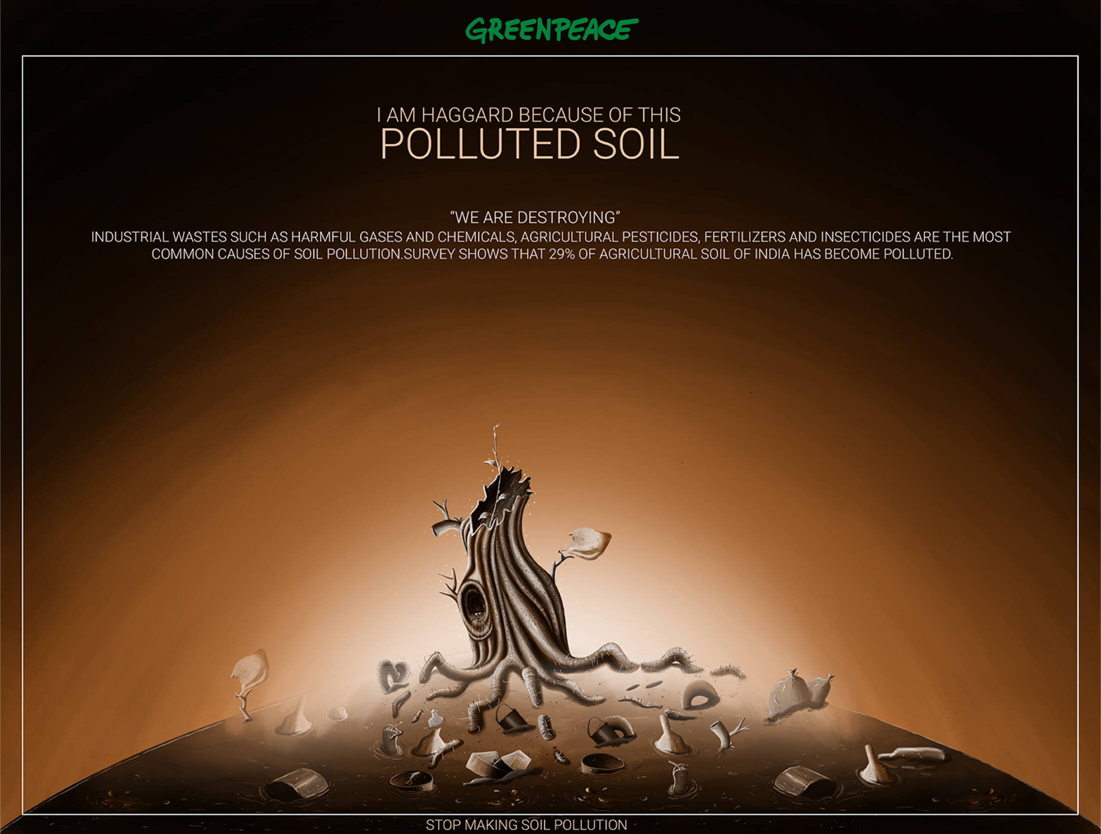 Anti-Pollution Project For Delhi College of Art Vision: In these campaigns, I have shown the different types of pollution which are causing danger to the atmosphere. I have tried to show how these pollutions are affecting not only humans but animals and other creatures also. Air Pollution, Water Pollution, Noise Pollution And Soil Pollution.