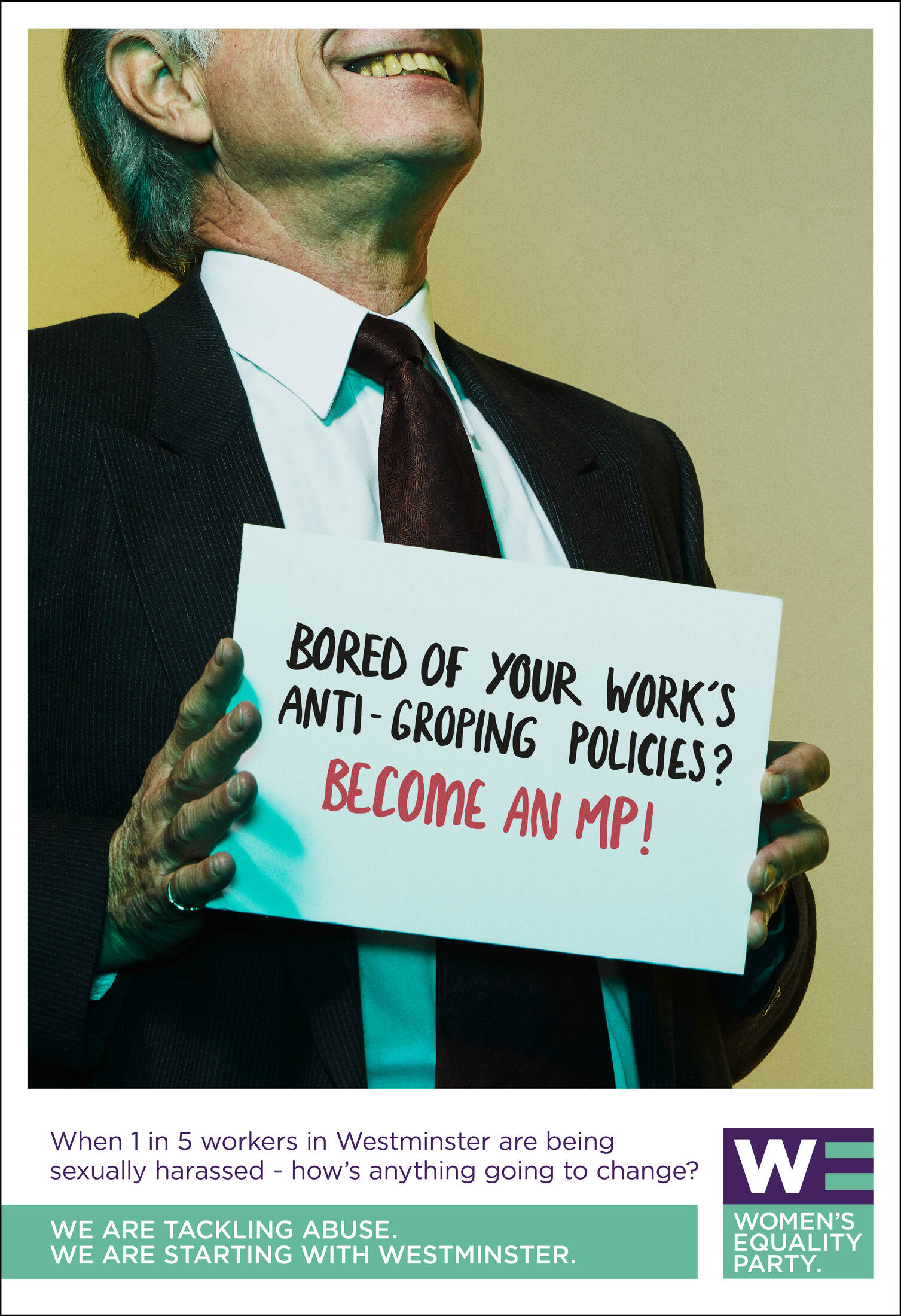 This professional campaign titled 'Anti-violence' was published in United Kingdom in October, 2019. It was created for the brand: Women’s Equality Party, by ad agency: Quiet Storm. This Print medium campaign is related to the Public Interest industry and contains 5 media assets. It was submitted about 6 years ago.