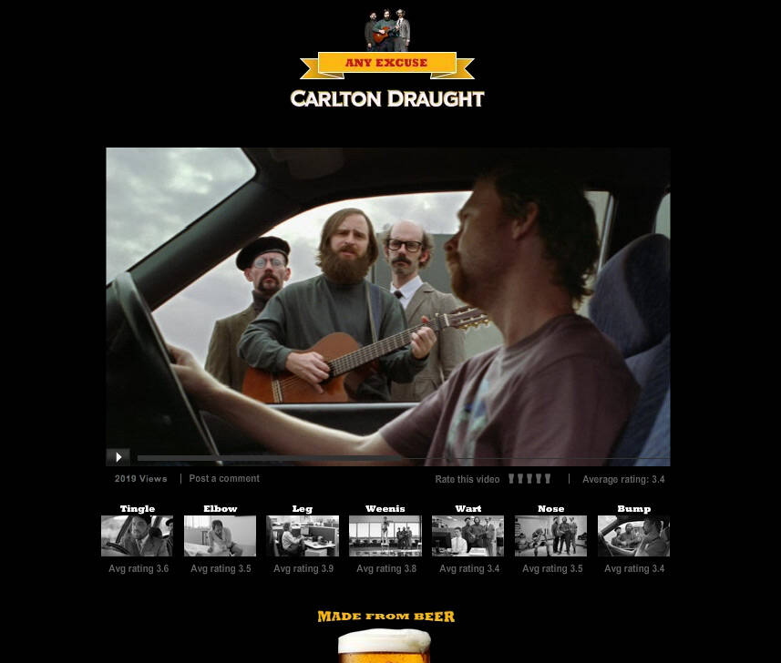 This professional campaign titled 'Any excuse' was published in Australia in March, 2010. It was created for the brand: Carlton, by ad agency: BBDO. This Digital medium campaign is related to the Alcoholic Drinks industry and contains 1 media asset. It was submitted over 15 years ago.