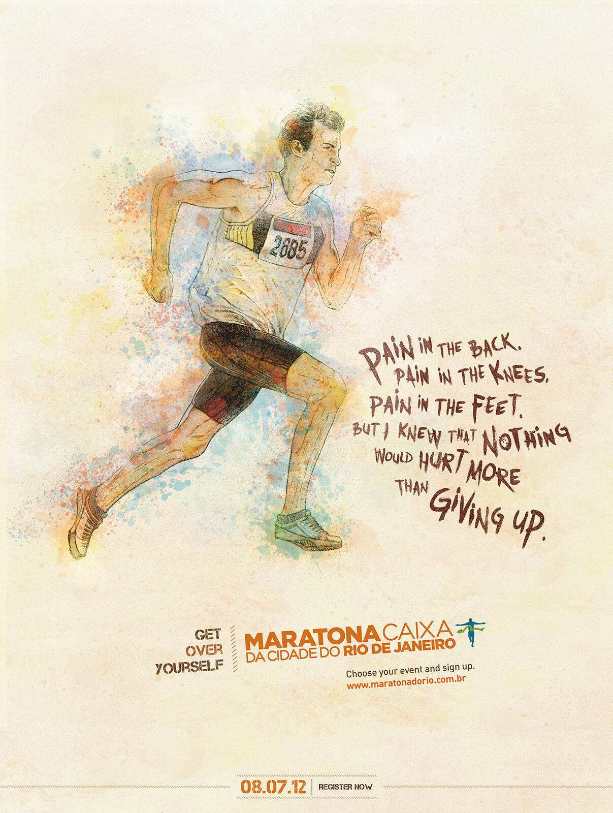 This professional campaign titled 'Anything, Pain, Alive' was published in Brazil in January, 2012. It was created for the brand: Maratona do Rio, by ad agency: Artplan. This Print medium campaign is related to the Recreation, Leisure industry and contains 3 media assets. It was submitted over 13 years ago.
