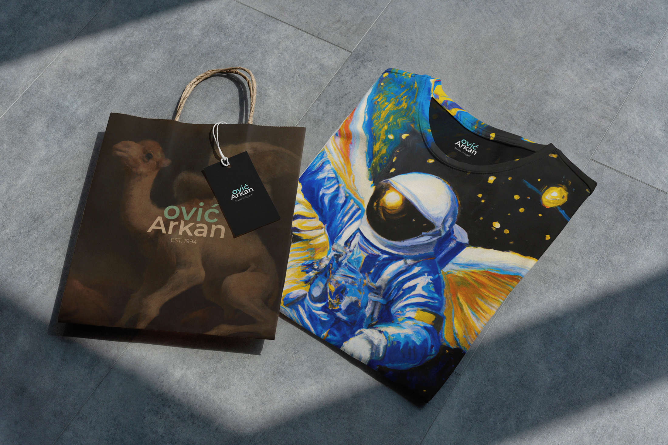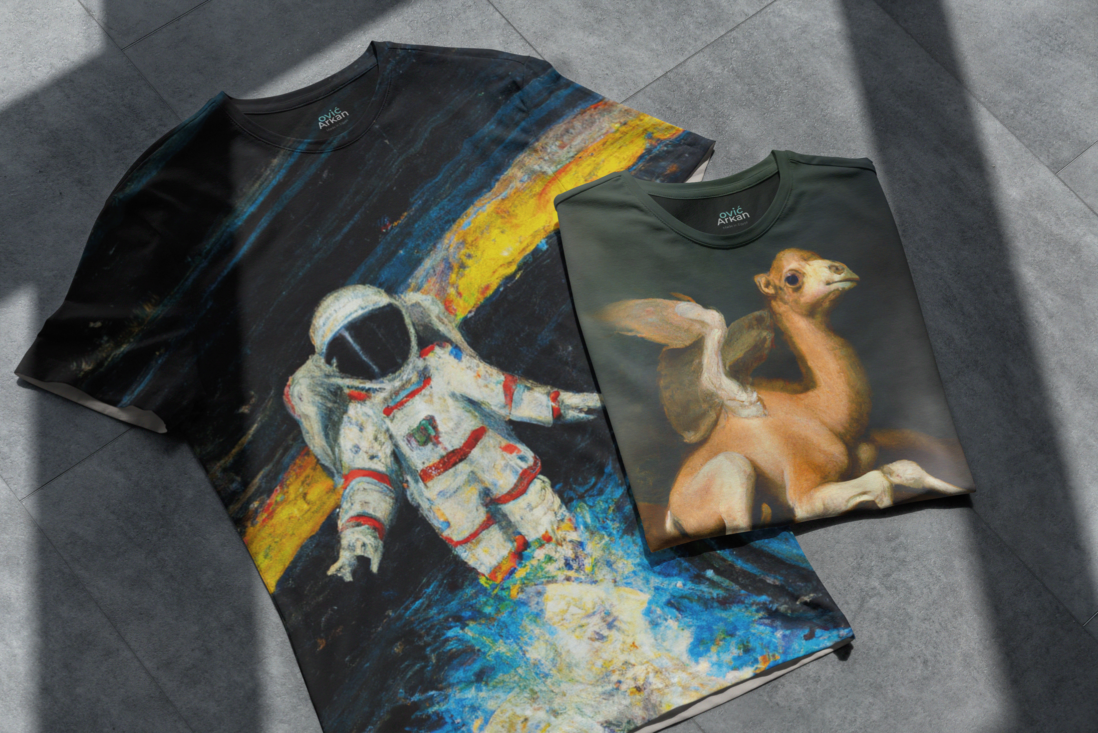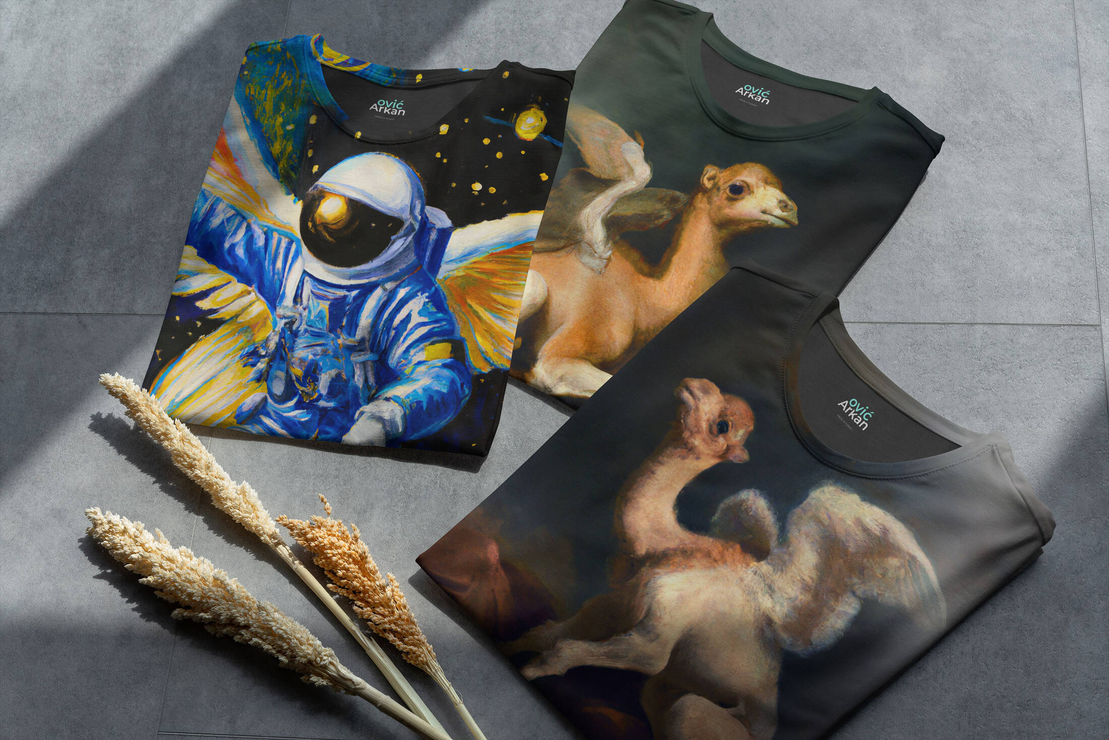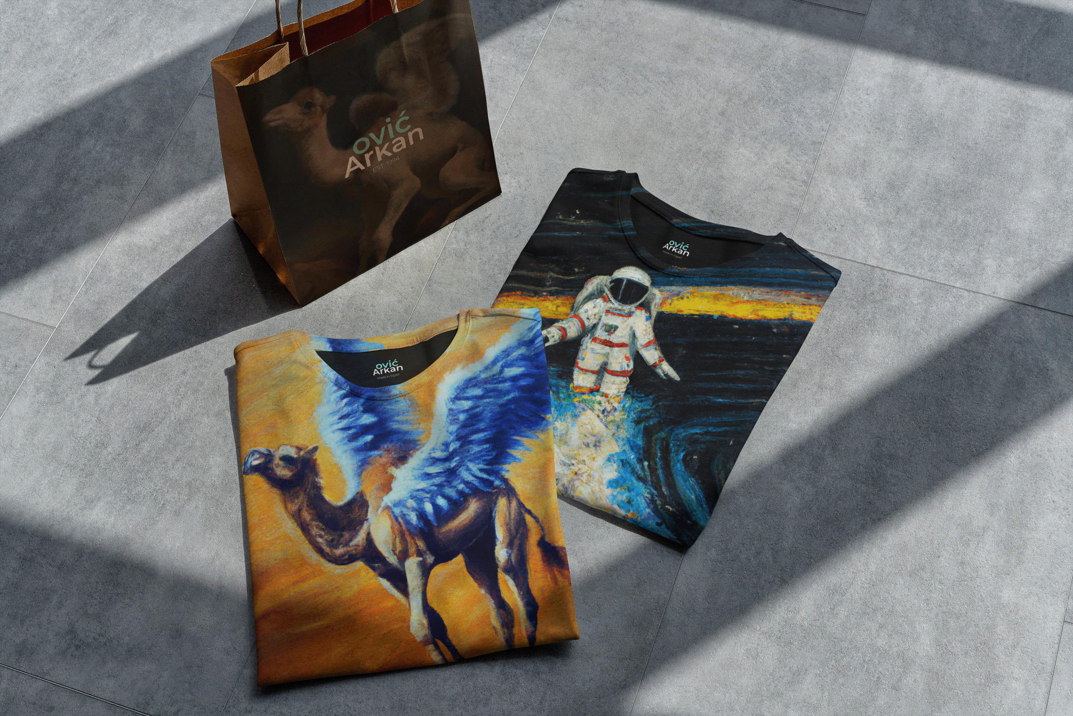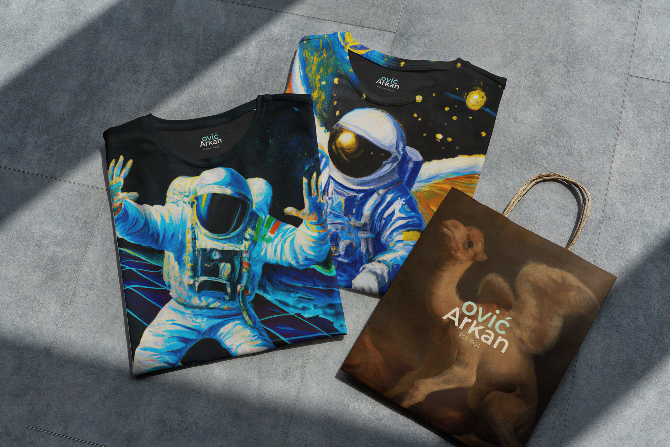 Welcome to the futuristic world of Arkanović brand T-shirts, where modernity meets space-inspired design. Our collection encapsulates the essence of innovation and style, offering a unique blend of the celestial and the contemporary. Immerse yourself in the allure of our T-shirts, where a flying camel and an astronaut coexist in harmony, creating a visual symphony that transcends time and space.