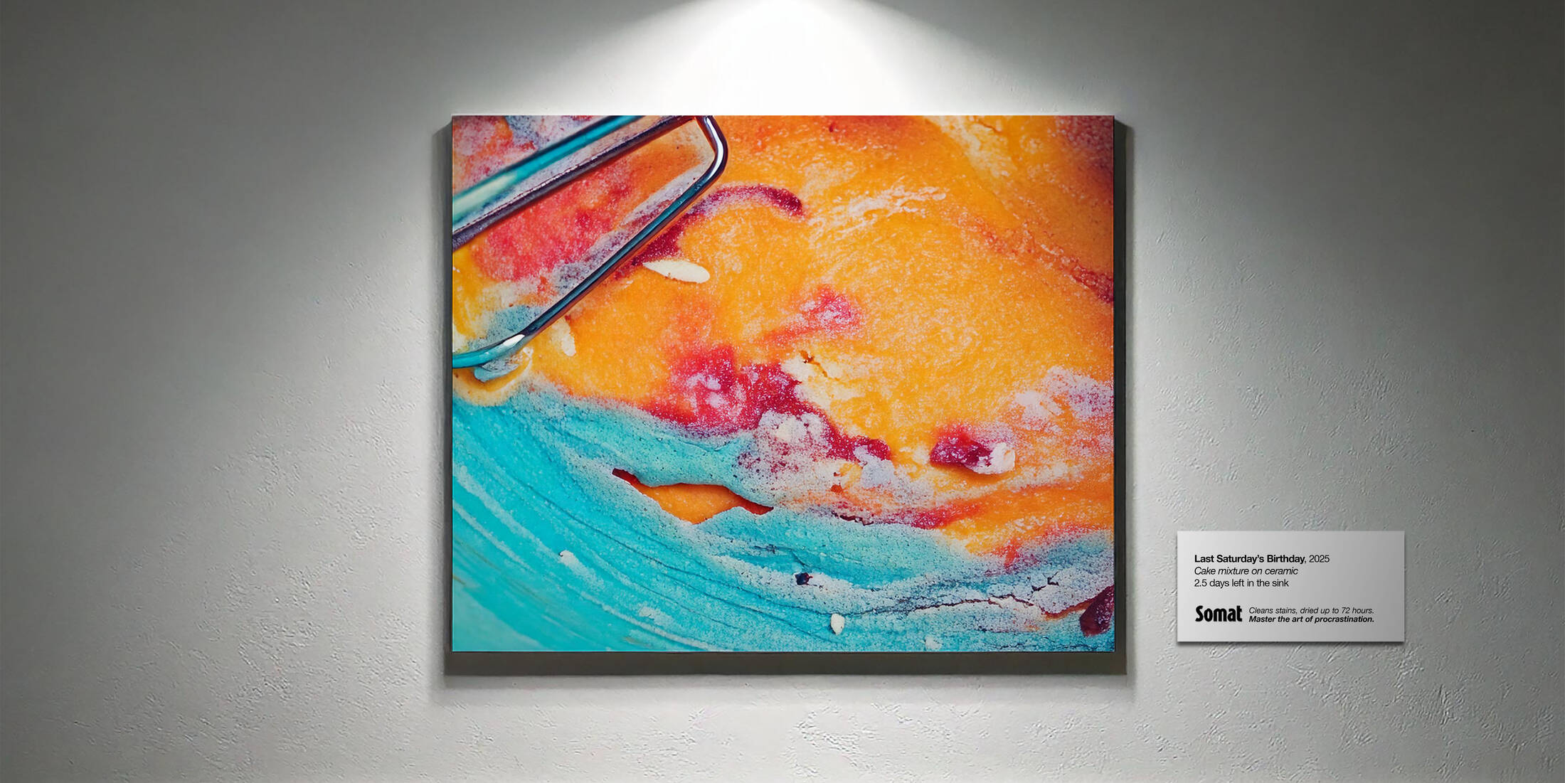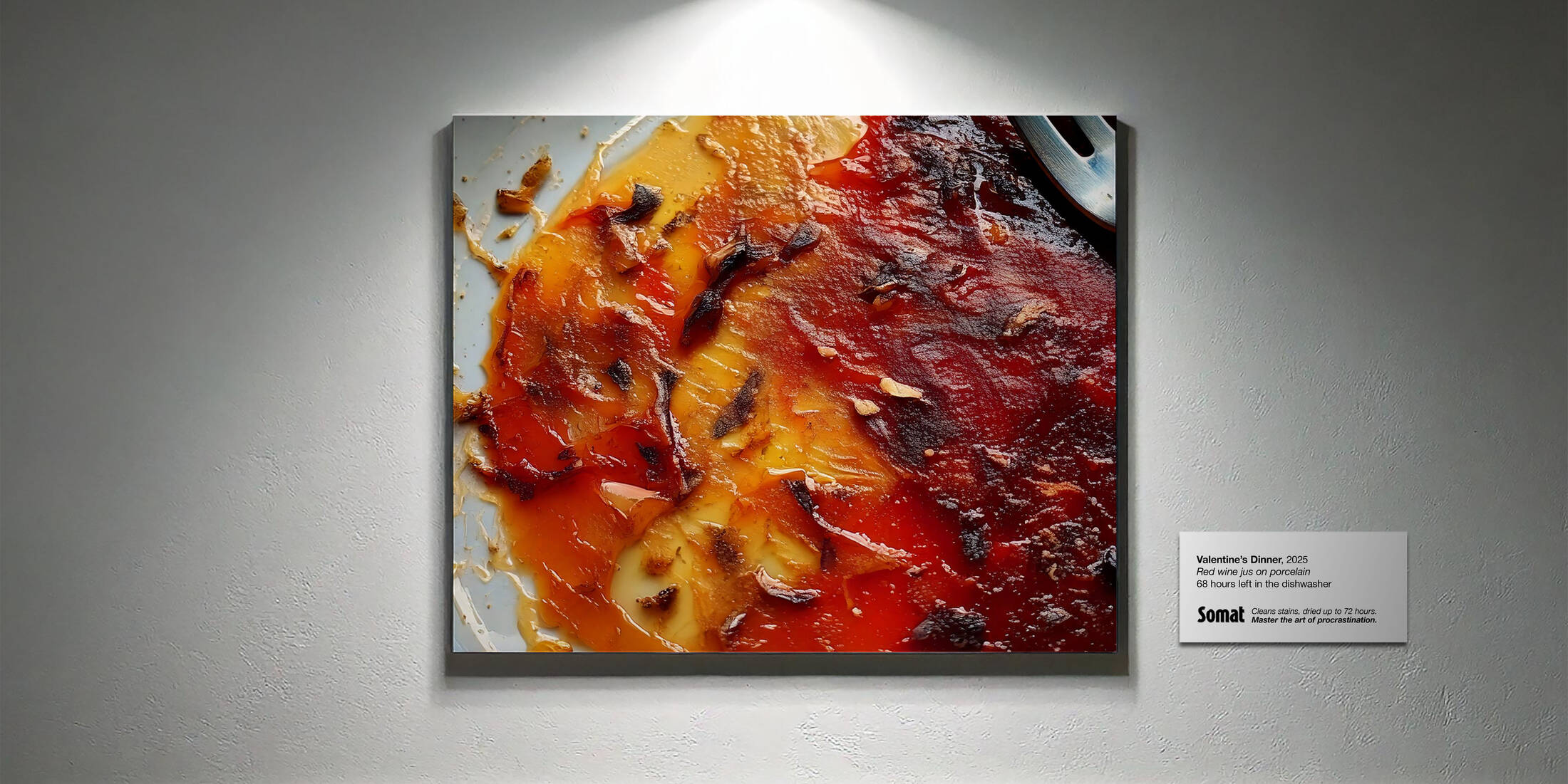 The hero film doesn’t just showcase a product; it elevates procrastination into an art form. By turning everyday dried-in stains into something visually striking, the ambition is to reframe a guilty habit into a cultural statement: with Somat, even life’s delays can end in spotless perfection.