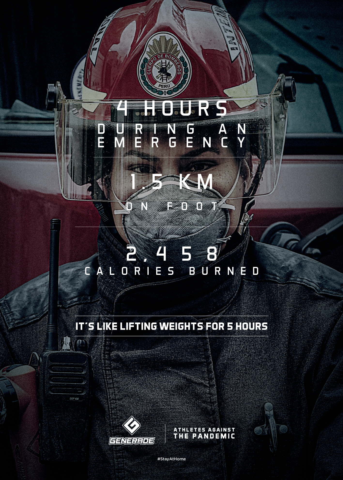 This professional campaign titled 'Athletes' was published in Peru in June, 2020. It was created for the brand: Generade, by ad agency: Grupo SP. This Print medium campaign is related to the Drinks (Non Alcoholic) and Public Interest industries and contains 4 media assets. It was submitted over 5 years ago by Creative Director: Lato La Torre of Mood Peru.