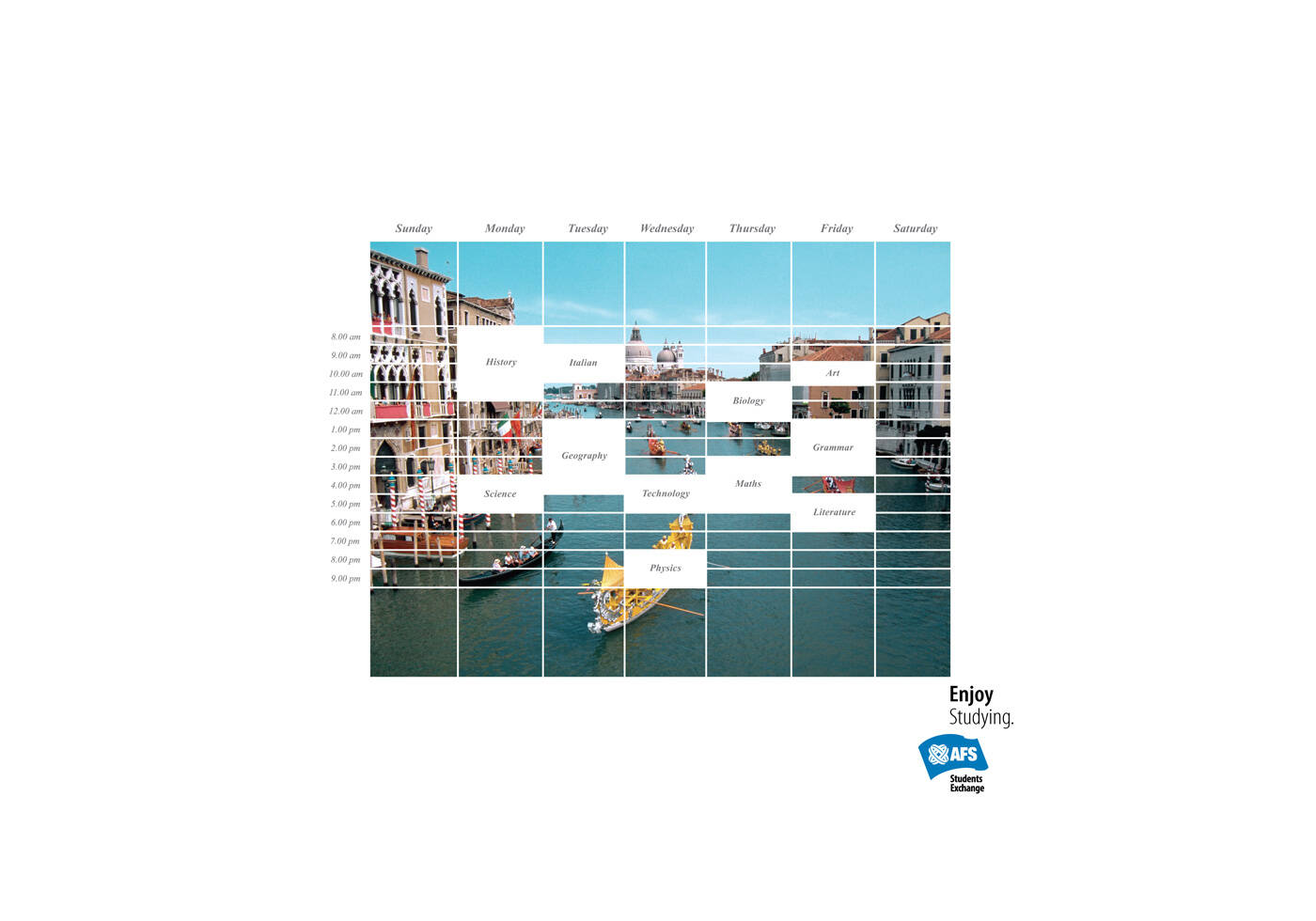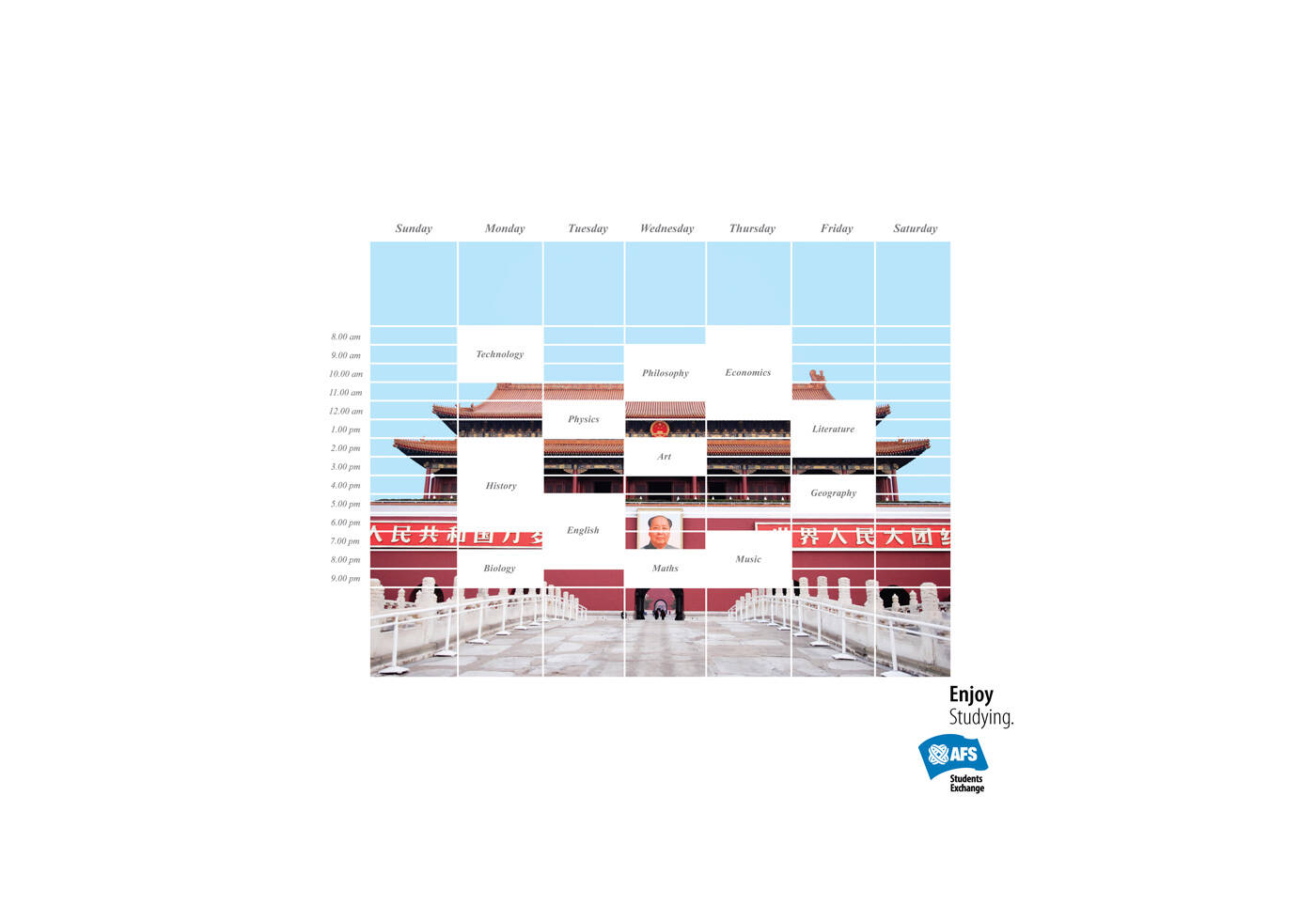 This professional campaign titled 'Australia, China, Italy' was published in Argentina in March, 2010. It was created for the brand: AFS, by ad agency: Ogilvy. This Print medium campaign is related to the Education industry and contains 3 media assets. It was submitted almost 16 years ago.