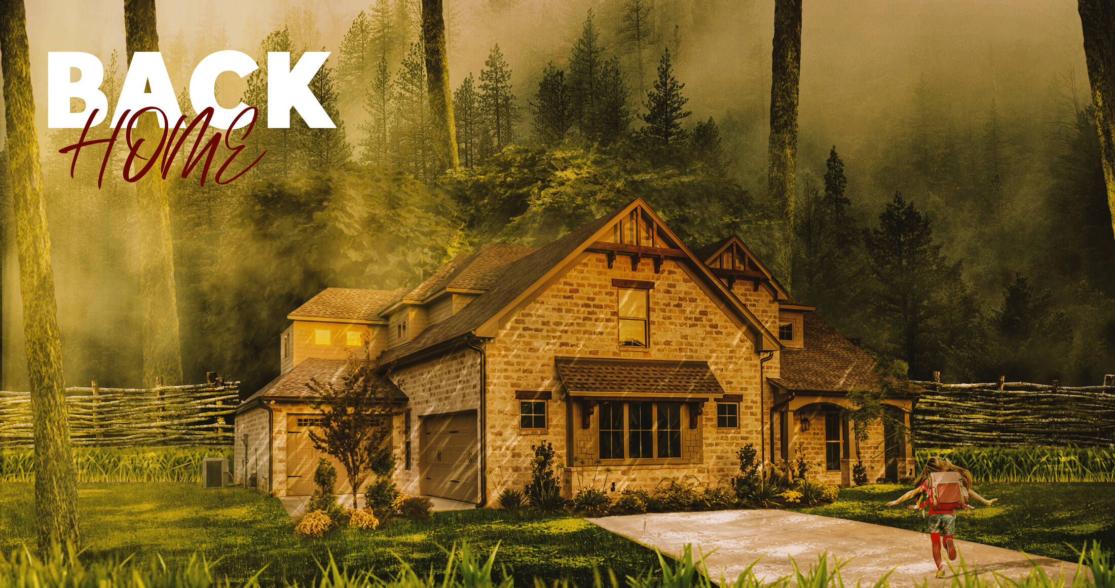 This Visual Describe The Happiness When The Girl Back To Her Home, This Home is between The Grass and trees