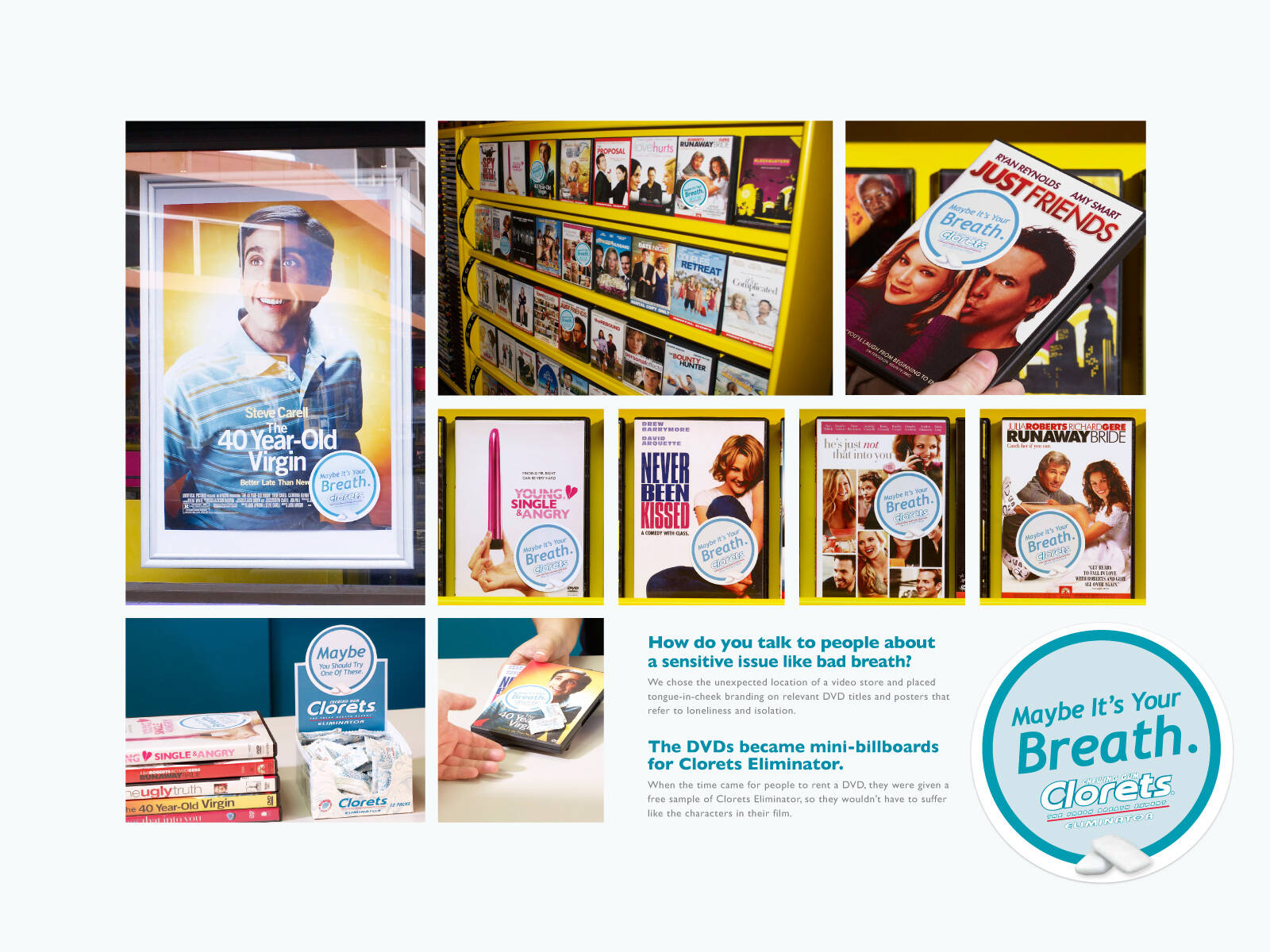 This professional campaign titled 'Bad Breath' was published in South Africa in June, 2011. It was created for the brand: Clorets, by ad agency: Ogilvy. This Static Images medium campaign is related to the Confectionery, Snacks industry and contains 1 media asset. It was submitted over 14 years ago.