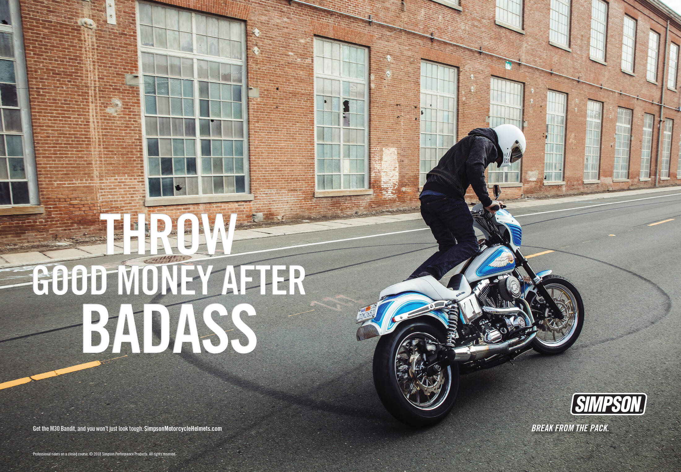 This professional campaign titled 'Badass' was published in United States in April, 2018. It was created for the brand: Simpson Motorcycle Helmets, by ad agency: LGA. This Print medium campaign is related to the Personal Accessories industry and contains 1 media asset. It was submitted over 7 years ago.