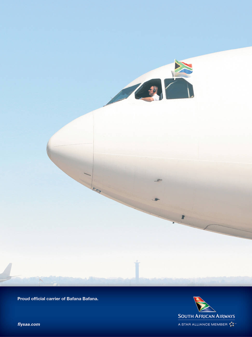 If you've seen the streets in South Africa during the 2010 soccer world cup you'd have noticed that almost every second vehicle on the road has a small South African flag clipped onto a window in support of the host country's national soccer team (Bafana Bafana).This colourful phenomenon has become a defining characteristic of the 2010 world cup next to the Vuvuzella. This ad ran to show that as the South Africa's national soccer team's official carrier, South African Airways' support extends beyond just getting Bafana Bafana to the games.