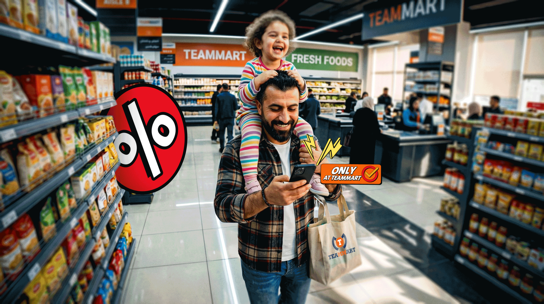 The best shopping trips aren't really about shopping. They're about who you bring with you. A father, a daughter on his shoulders, and a store full of reasons to stay a little longer. Bahar at TeamMart isn't just a sale, it's a moment the whole family walks into together. Deals that make sense. A day that makes memories.