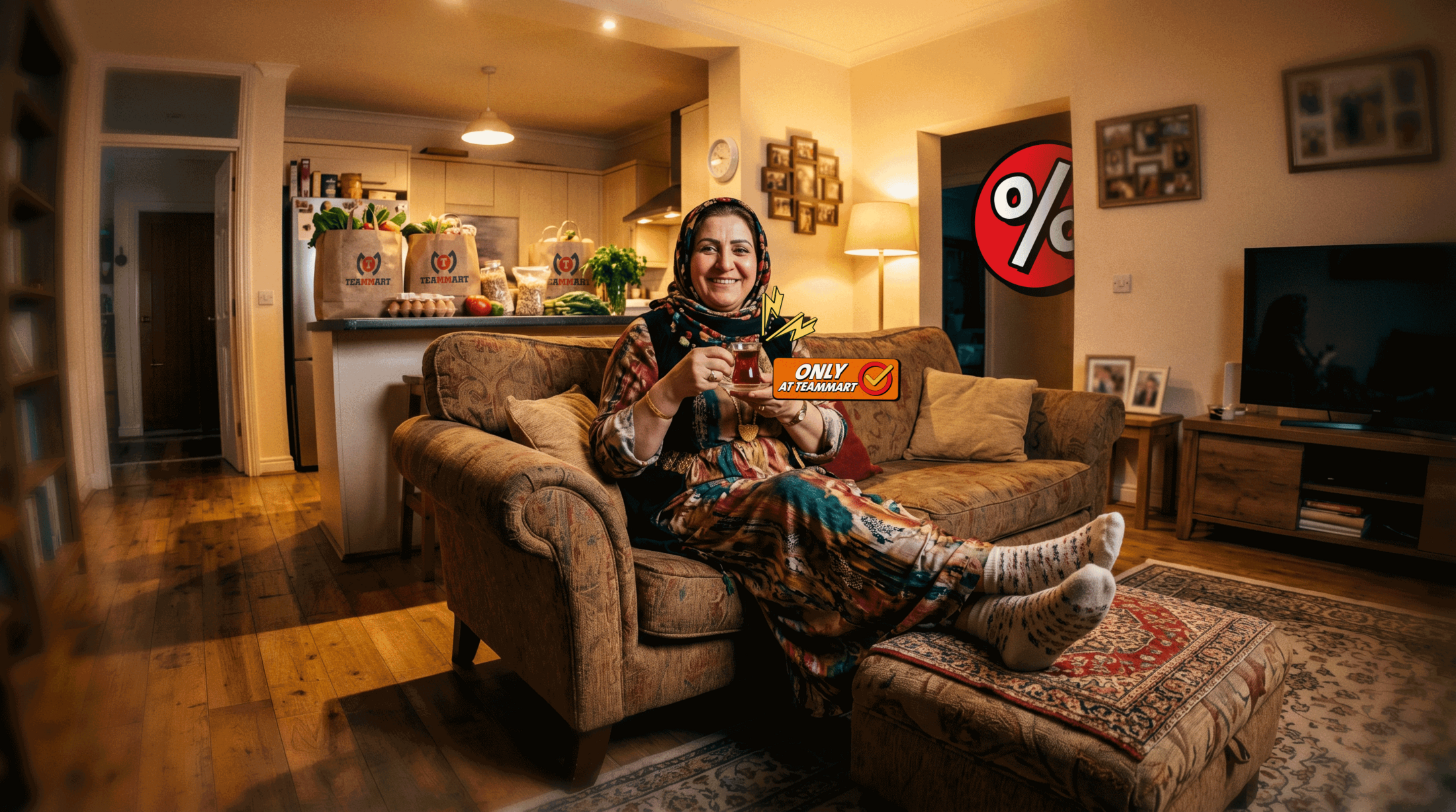 She didn't go to the deals. The deals came to her. Feet up, wrapped in comfort, TeamMart bag resting where it belongs, right at home. This is what a good shopping trip feels like after the fact: satisfied, sorted, and already thinking about next time. Bahar is here, and it showed up at the door before she even had to ask.