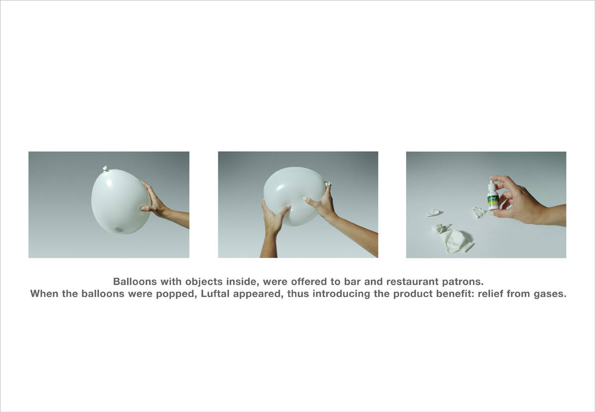 This professional campaign titled 'Balloon' was published in Brazil in October, 2007. It was created for the brand: Luftal, by ad agency: FCB. This Static Images medium campaign is related to the Pharmaceutical industry and contains 1 media asset. It was submitted over 17 years ago.