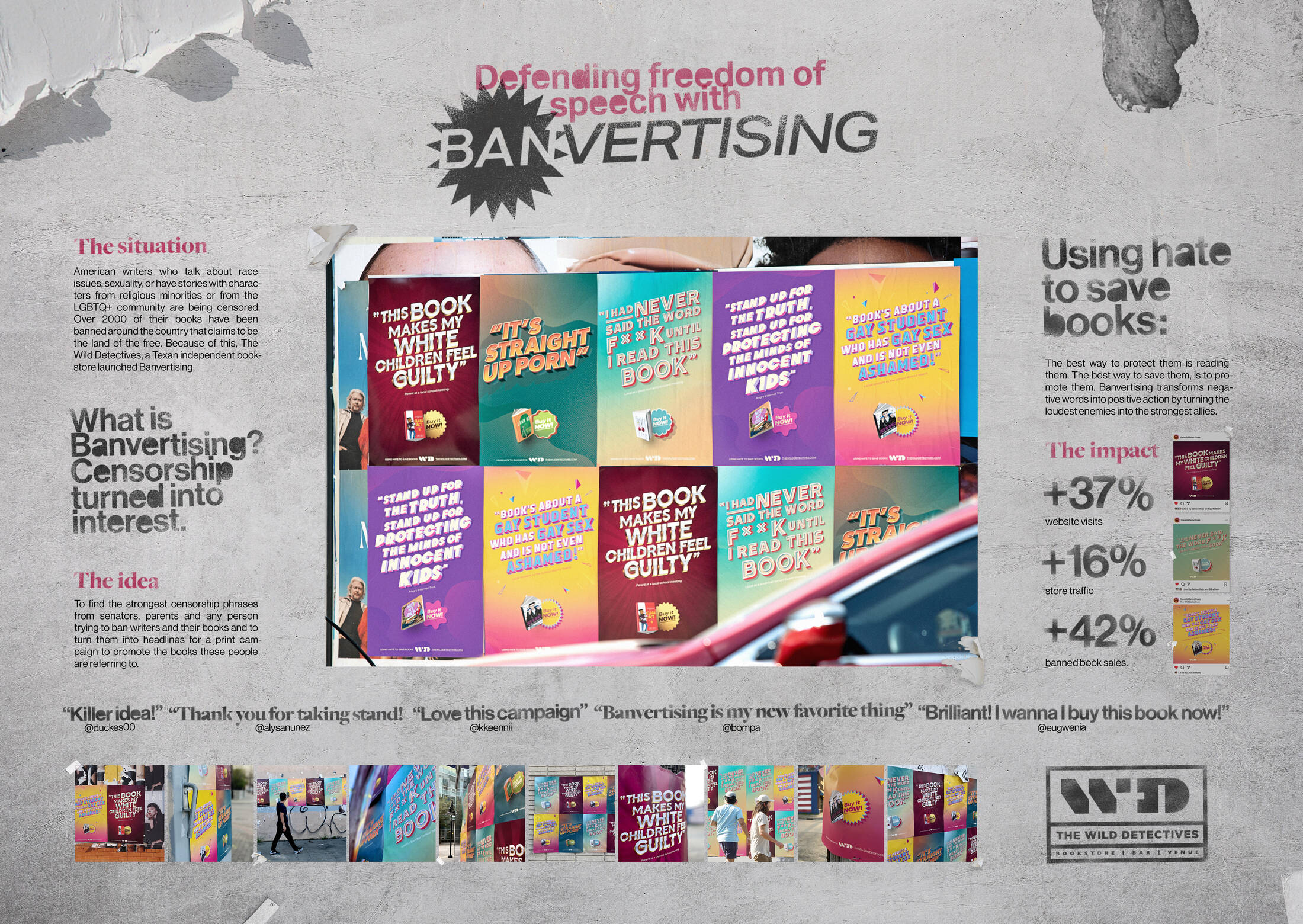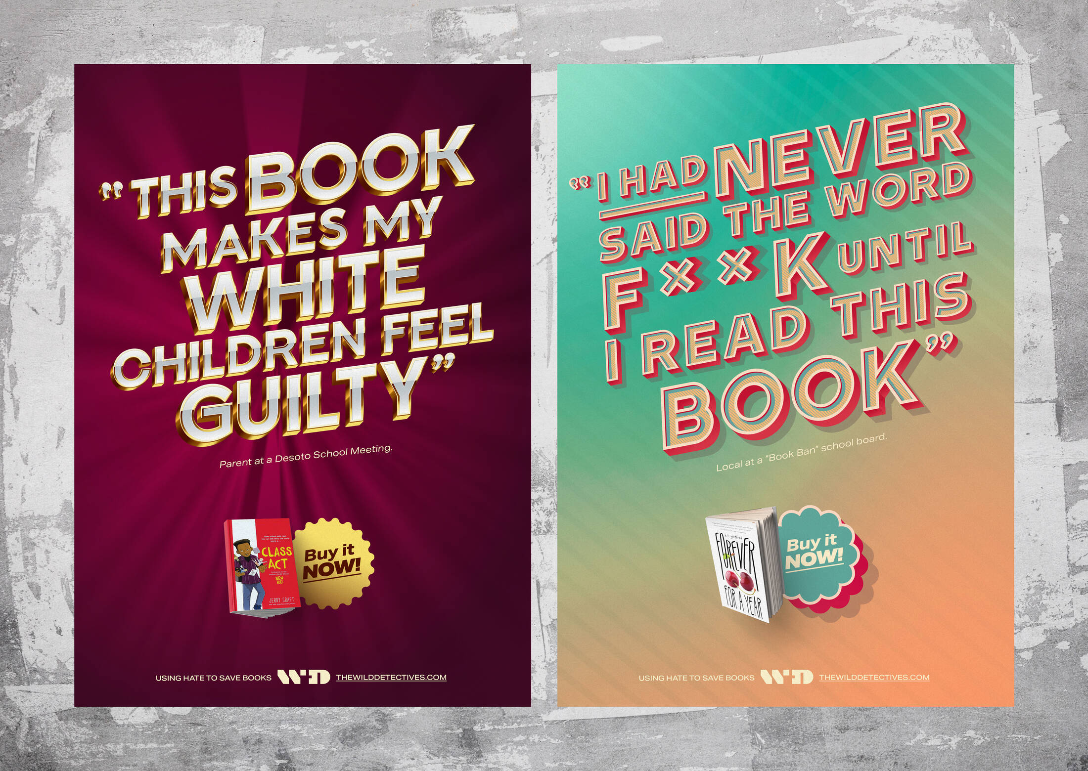 This professional campaign titled 'BANvertising' was published in United States in October, 2023. It was created for the brand: The Wild Detectives, by ad agency: Dieste. This Design, OOH Outdoor, and Print media campaign is related to the Public Interest industry and contains 5 media assets. It was submitted over 2 years ago.